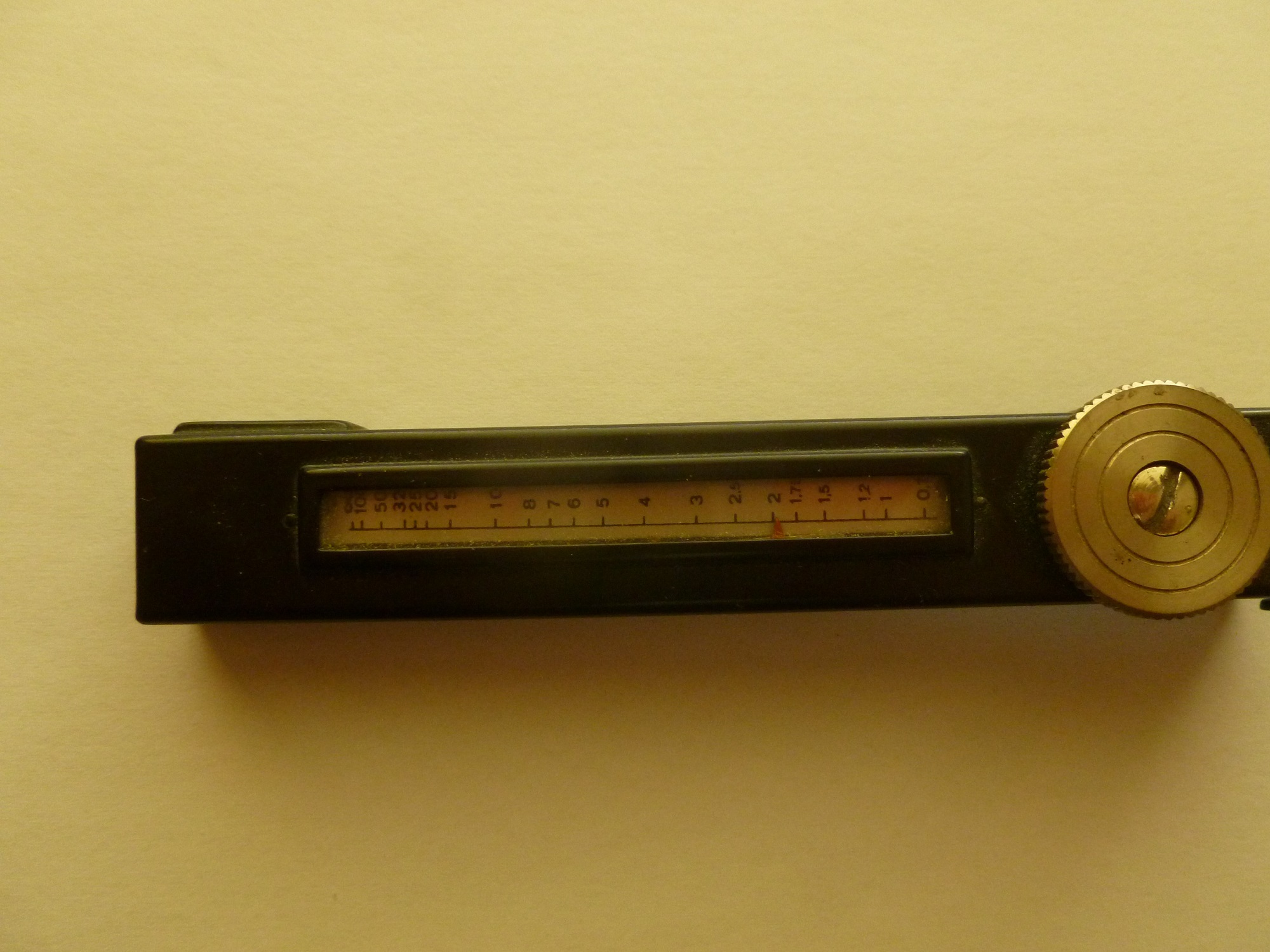 In einem älteren Photo-Deal-Artikel (Heft 52, 2006, S. 52-55) präsentiert Hubert E. Heckmann "Entfernungsmesser als Sammelgebiet" vor und stellt auch einige Beispiele vor. Auf einem Foto (S. 53) befindet sich auch das von Dir gezeigte Modell, leider bemerkt Heckmann dazu auch nur "unbezeichnetes Exemplar mit verstellbarem Zeiger".