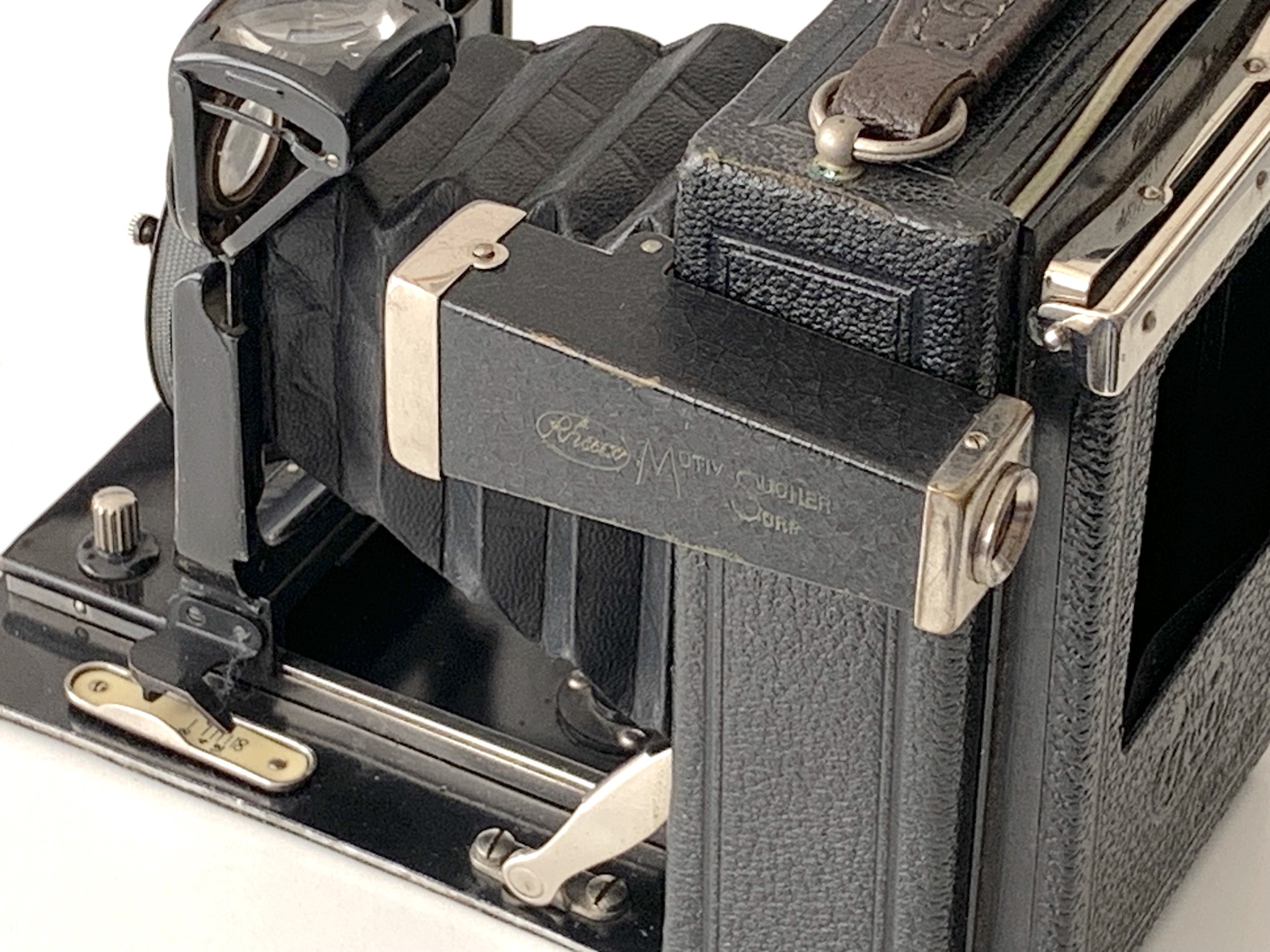 schon in der ersten Hälfte des 20. Jahrhunderts gab es ein überaus reichliches Zubehörprogramm; die Kataloge größerer Händler sind da eine wahre Fundgrube. Vieles hat man sich beispielsweise für den Bereich externer Sucher einfallen lassen. Für Aufnahmen aus der Hand haben Plattenkameras zumindest einen Brillantsucher, seit Mitte der 20er Jahre sind auch Ikonometer (Rahmensucher) weit verbreitet. Wer einen optischen Sucher für Aufnahmen aus Augenhöhe nachrüsten wollte, konnte beispielsweise einen "Motivsucher" ans Gehäuse klemmen, wie er vom Photohaus Matthias im Katalog 1931 angeboten wurde: