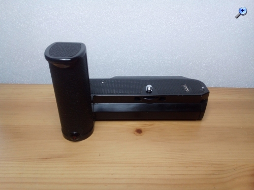 Angesetzt wird der REVUE Motor 35 mittels der 1/4" Schraube am Stativgewinde der Kamera. Vorher muß an dieser die Abdeckung am Boden für den Motoreingriff entfernt werden. Damit die kleine Abdeckplatte nicht verlorengeht kann diese in eine Öffnung an der Unterseite des Winders sicher eingeschraubt werden.