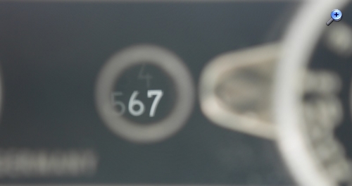 Der Messbereich des Entfernungsmessers geht von 55cm bis Unendlich mit Anzeige auf dem Stellrad.