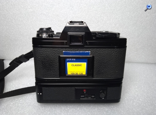 Die Steuerung des Winders erfolgt über den Auslöser der Kamera. Es sind Einzelbildaufnahmen (einmaliger kurzer Druck auf den Auslöser) und Serienbildaufnahmen (längerer Druck auf den Auslöser) mit max. 2 Bildern/sec. möglich. Ein 36er Film kann also theoretisch in ca. 18 Sekunden "verschossen" werden. Am Filmende stoppt der Winder automatisch, ein Herausreißen des Filmes aus der KB-Patrone muß also nicht befürchtet werden. Die Rückspulung des vollen Filmes erfolgt dann aber wieder ganz klassisch mit der Rückspulkurbel der Kamera.