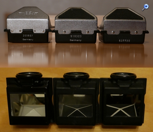 wenn man sich mit der Edixa etwas eingehender beschäftigt, muss man sie liebgewinnen. Hier sind noch einige Bilder, die die E. Reflex mit dem zeitlich passenden Prisma zeigen; zumindest vom Aussehen her. Die Seriennummer ist natürlich viel zu hoch (Dürfte von einer D stammen). Um richtige "Edixa-Prismologie" zu betreiben, bräuchte man wohl ein Dutzend Prismen. Drei Stück sind nicht gerade aussagekräftig... Wäre schön, wenn Du Deines auch noch von unten zeigen könntest. Die zwei Rillen am Prisma fand ich nie besonders schön. Wieso nicht schlicht und einfach wie bei der Exakta oder der Nikon F? Nun kenne ich die Antwort, die aus einem der gezeigten Bilder ersichtlich wird: ein funktioneller Grund!