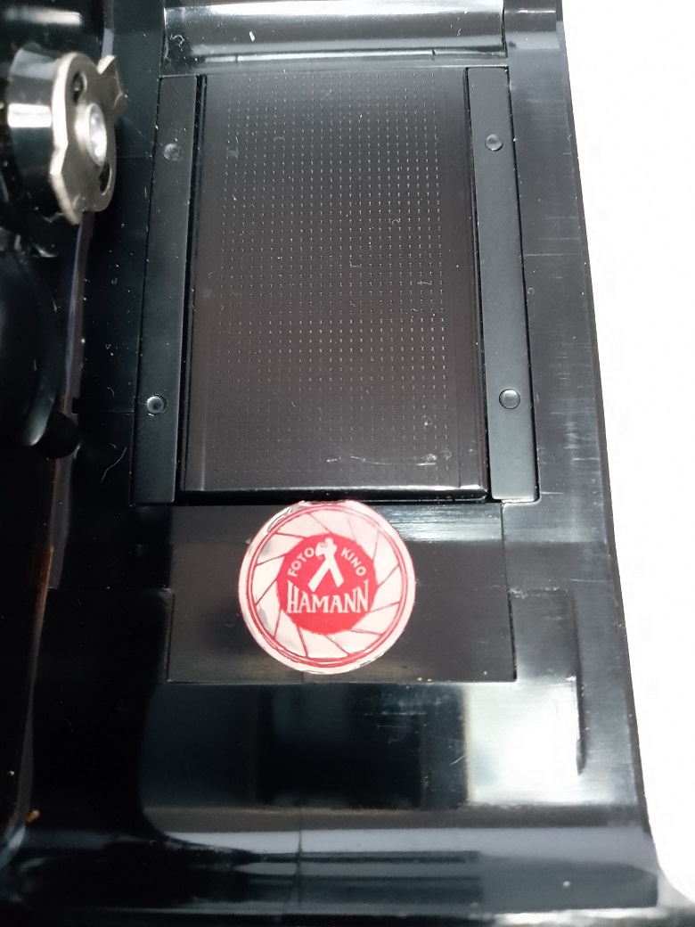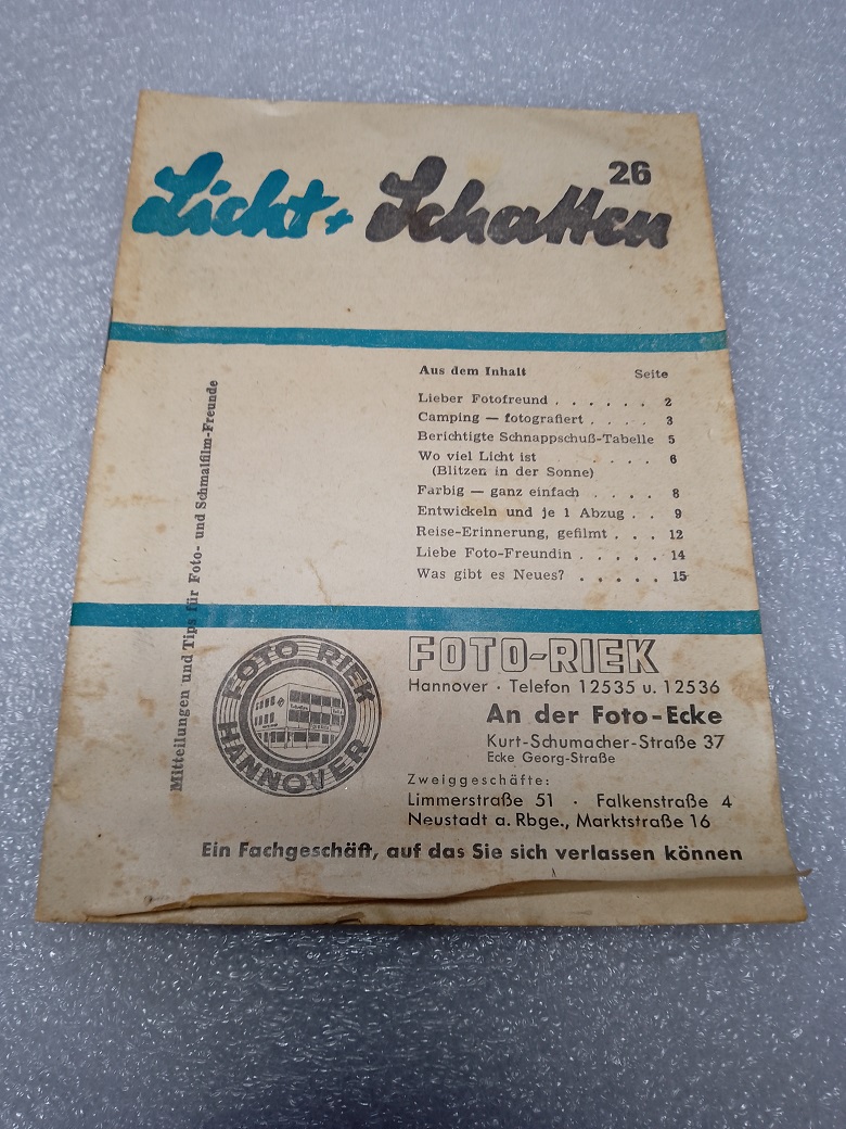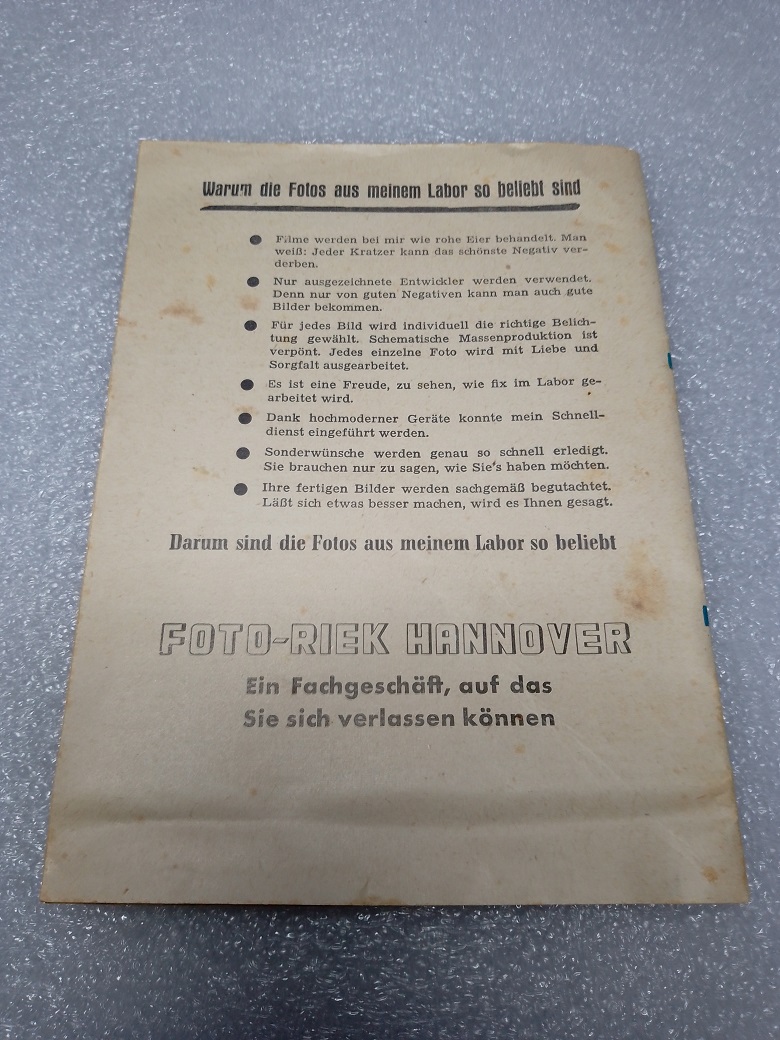 AWR59:Händlerschild von FOTO RIEK aus Hannover in einer Agfa Isola