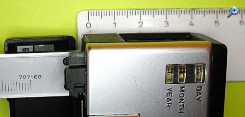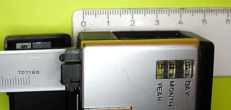 Auch das hatte ich mir nach Deinem Frageposting vom 16.2.2020 angesehen. Aber sieh' mal, die Datumsrädchen sitzen genau hinter dem Batteriekasten und ich habe dessen Tiefe ausgemessen (ohne dessen Deckel und Deckel-Halterung, die in die Rückwandklappe hineinragen):