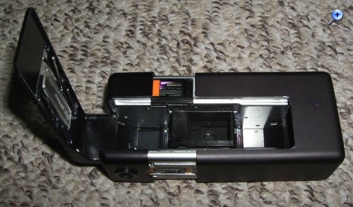 Der Film konnte nach der Komplettbelichtung nur entnommen werden, wenn der Würfelblitz-Adapter abgenommen wurde,