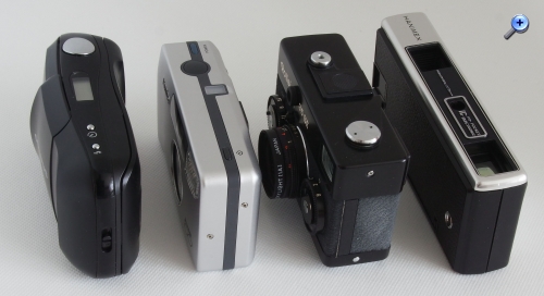 Wie schon Hannes schrub: Soo klein waren die Pocket-Kameras gar nicht: Olympus µ, APS-Kamera, Rollei 35, Hanimex ICM