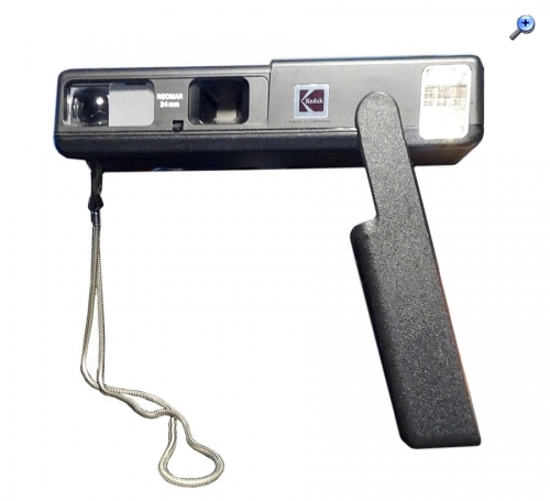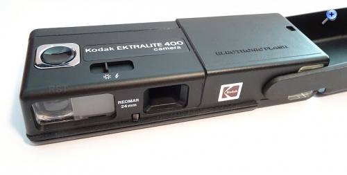 eine einfache und nicht besonders wertig aussehende Kamera, die damals zu ca. 120 DM angeboten wurde. Diese Pocket-Kamera reagiert auf die eingelegte 110 Patrone hinsichtlich der ASA-Zahl durch Veränderung der Verschlußzeiten! Die Kamera hat einen eingebauten Elektronenblitz und einen ausklappbaren Haltergriff (der allerdings ergonomisch nicht so gut gelungen ist und auch nur unbequem geöffnet werden kann).