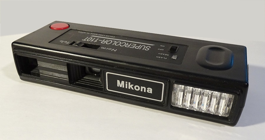 eine Billig-Pocket-Kamera, allerdings mit schaltbarem Teleobjektiv. Macht keinen wertigen Eindruck. Immerhin ist ein schaltbarer Elektronenblitz eingebaut mit Ready-Anzeige. Aufzug wie üblich mit Schieber. Bildzähler an Rückwand. Trageriemen. Batterie 2 x 1,5 Volt AA. Sucher ohne Marke.