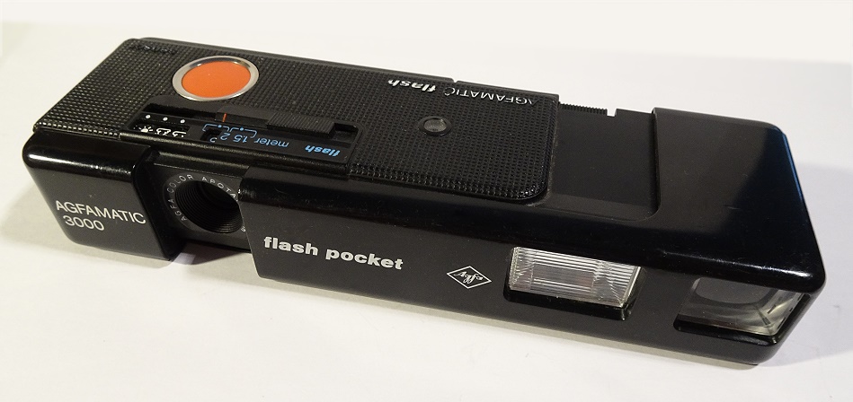 eine Variante der schon im Forum vorgestellten Agfamatic 3000 pocket, diesmal aber mit eingebautem Elektronenblitz. Schaut man nicht so genau hin, könnten man annehmen, dass die Kamera eine Entfernungseinstellung für das Objektiv hätte. Hat sie abr nicht. Siehe bei den technischen Daten.