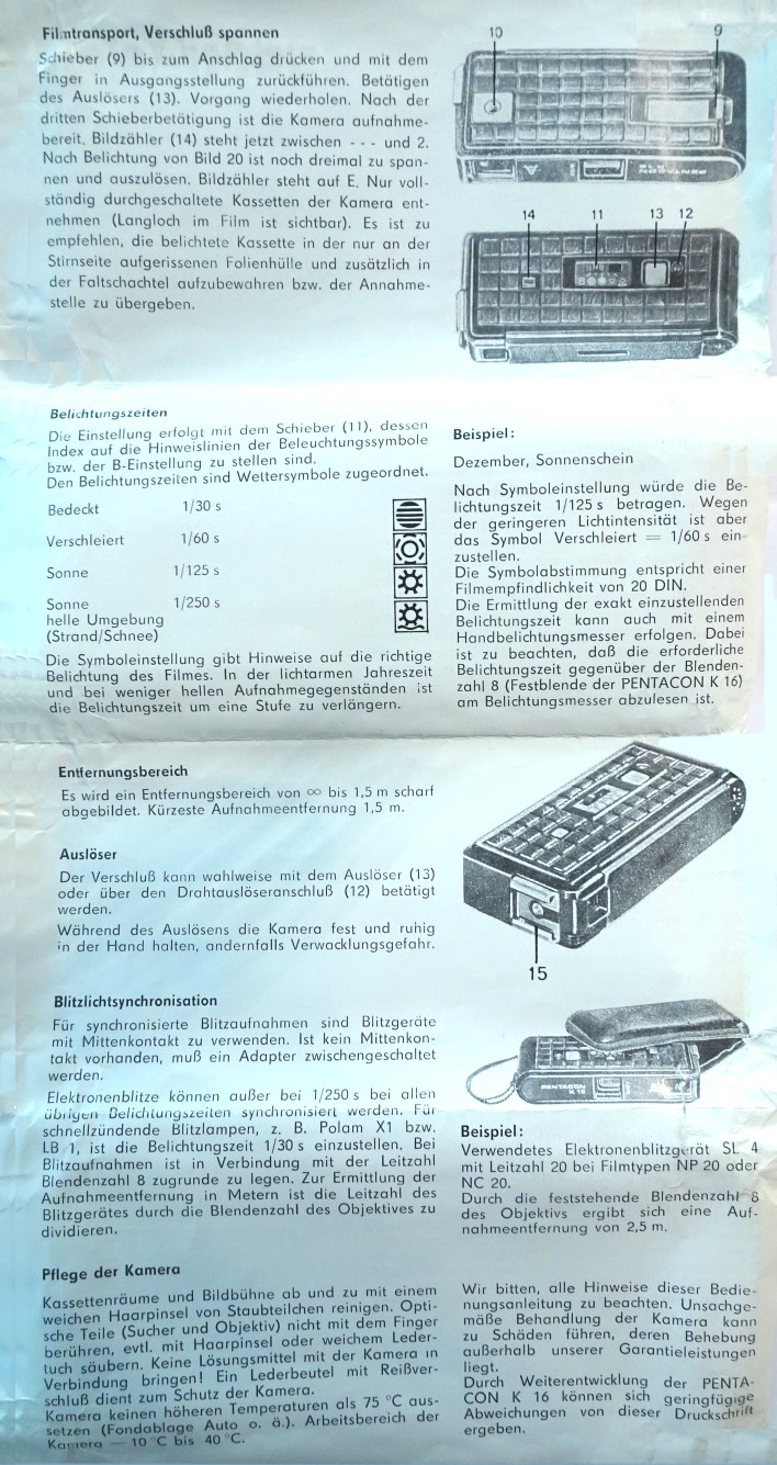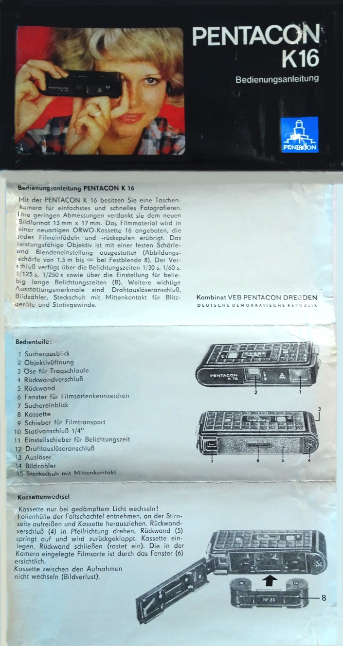 Re: Pentacon K16, eine "Beinahe-Pocket-Kamera". Bedienungsanleitung