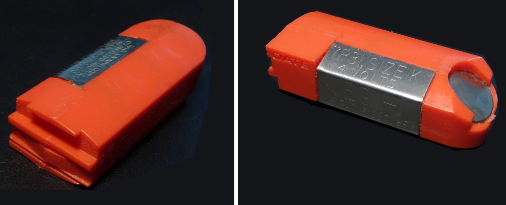 ... und leere K-size Batterien, z.B. Energizer Nr. 538 oder Duracell 7r31, nicht wegwerfen. Sie enthalten Knopfzellen ganz normaler Größe, wobei es sich bei mir (nicht an meiner Kodak Pocket 60) stets als unwichtig erwiesen hat, ob heutige Knopfzellen eine minimalst andere Spannung haben. Diese Batterien sind wohl die (einzige) Möglichkeit für einen Bastler, diese wertvollen Kameras mit heutigen Knopfzellen wieder in Betrieb zu nehmen.