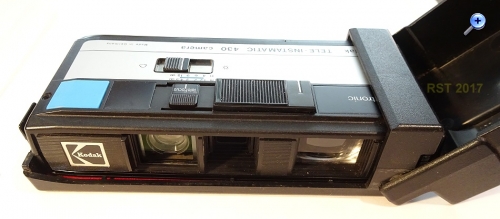 eine frühe Pocket-Instamatic mit zwei eingebauten Wechsel-Objektiven. Hergestellt wurde die Kodak Tele-Instamatic 430 im berühmten Nagelwerk in Stuttgart. Nagel baute u.a für Kodak auch die beliebten Retina-Kameras. Die Kamera hatte so einige interessante Fähigkeiten:
