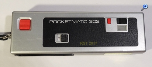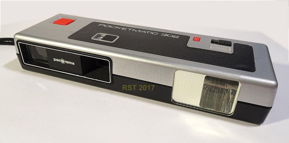 diese Pocket-Kamera Panorama Pocketmatic 302 für das 110-Film-Format wurde in "West-Germany" hergestellt. Ein zuschaltbarer Elektronenblitz ist eingebaut, mit Test-Taster und Bereitschaftsanzeige. Versorgt mit zwei AAA-Batterien.