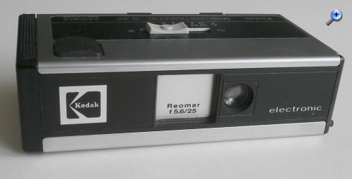 eine Pocket-Kamera mit vergütetem 3 Linser (Fixfokus 1:5,6 25mm), 2 Zeiten (1/40 , 1/80) und stufenloser Blende aus Stuttgart. Im Sucher unterhalb des Leuchtrahmens sichtbare "Lichtwaage" mit LEDs. Knopf im Schieber schaltet die "electronic" ein. Zeit-Umschaltung ca. bei "2,8" (Meter bei Blitz-Betrieb. Die Kamera hat einen Blitz-Schuh und Mittenkontakt. Leider habe ich das offensichtlich zugehörige Blitzgerät nicht) Zusammenschiebbar, aber separater Transport (1 x Schieben pro Bild). Automatische Belichtung.