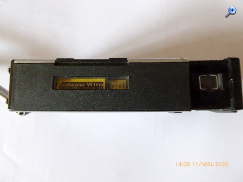Die Kamera macht mechanisch - im Gegensatz zu späteren Modellen auch aus Stuttgart - einen soliden Eindruck. Die silber-farbenen Teile sind wirklich aus Eisen/Stahl (Magnet hält daran und -zumindest unten - ist das Material ca 3/4 mm dick.) Gewicht ca 140 g. Belichtungsmesser-Betrieb mit 6V Alkali-Batterie (kann durch 4 x AG 13 ersetzt werden). Leider wird die eingestellte Belichtung nicht etwa durch eine mitgeführte Blende vor dem CdS-Widerstand, sondern durch ein Potentiometer am grauen Schieber übertragen und das hat jetzt nur noch stellenweise Kontakt . Die Filmklappe hat kein Gelenk, sondern ist mit dünnerem Material mit dem restlichen Gehäuse verbunden. Dort gibt's aber interessanterweise keine Probleme.