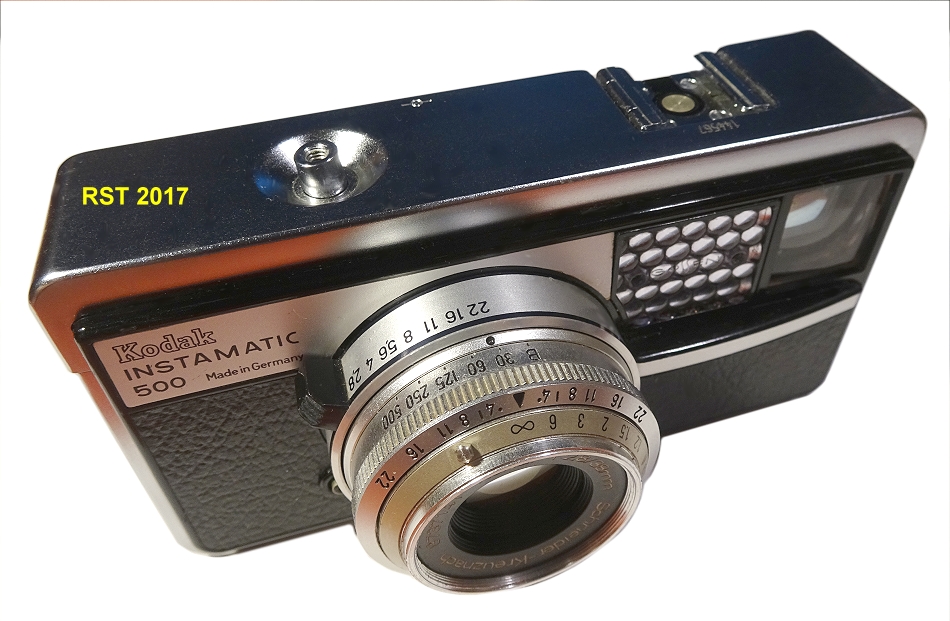 diese Kamera ist schon etwas Besonderes. Warum? Weil sie zur Zeit des neues Instamatic-Film-Formats durch Kodak ein Spitzenmodell war. Während fast alle anderen Instamatic-Kameras eher simpel konstruiert waren, wusste die Instamatic 500 durch Qualität zu punkten. Insbesondere das leichte Weitwinkel Schneider Kreuznach Xenar ist hier hervor zu heben. Auch ihre "kleine Schwester", die Kodak Instamatic 250 (von 1964) passte hinsichtlich der Qualität des Objektivs zur 500.