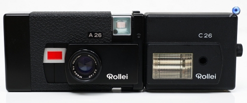 Blitzautomatik: bei angeschraubten Blitzgerät C 26 wird die Arbeitsblende automatisch mit der Entfernungseinstellung bis 4 m eingesteuert. Bei Verwendung von herkömmlichen Blitzgeräten können Leitzahlen 14; 20; 28 (für 21Din) eingestellt werden.