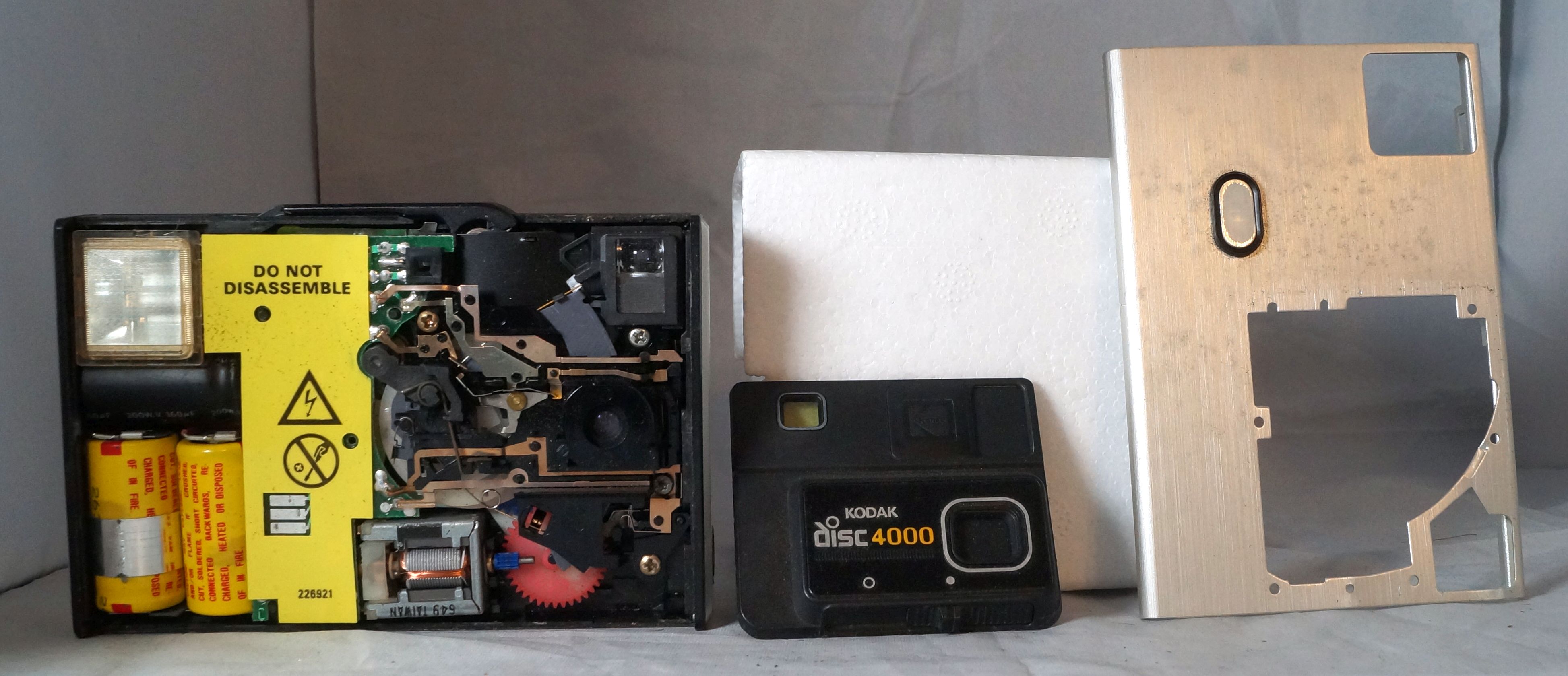 Ich habe in meinen Konvoluten immer mal die eine oder andere Disc Kamera mitbekommen, und die 4000 hatte ich sogar doppelt, und da mich solche Kameras nur am Rande interessieren habe ich mein doppeltes Exemplar der Suche nach der Batterie geopfert. Ich denke man könnte sie wohl wechseln wenn man vorsichtig vorgeht. Die Metallabdeckung lässt sich mehr oder weniger einfach und ohne Schaden abnehmen, der Plastikteil leider nicht, wobei der nur mit der Metalloberfläche verbunden ist, also einfach mit abgenommen würde, kurz, ich habe jetzt nur noch eine :-), aber ein recht interessantes Bild.