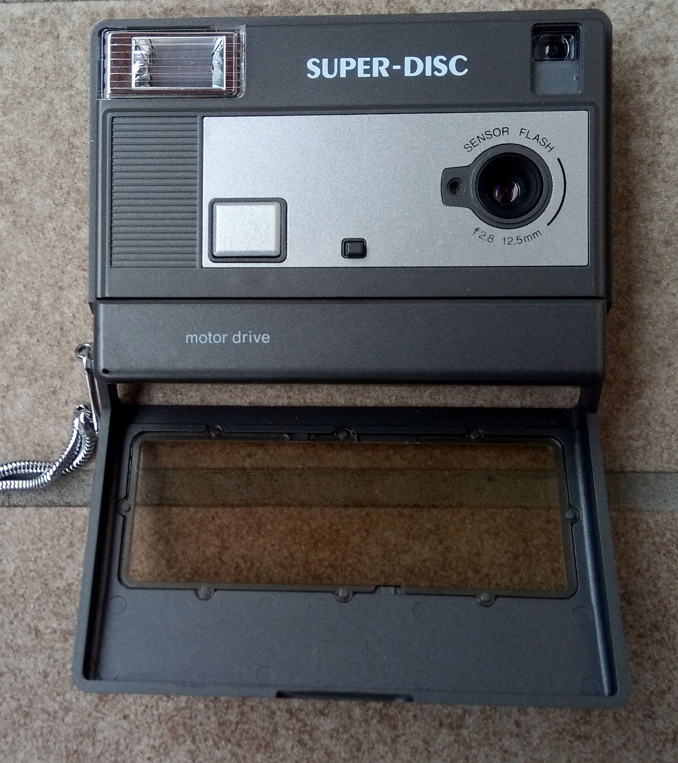 2) SUPER-DISC Fixfokus, Verschluss und Blendenstufen nicht dokumentiert, Automatik-Blitz, motorischer Film-Transport, "Made in Hong Kong" ( Haking) Batterien: 2 x AA