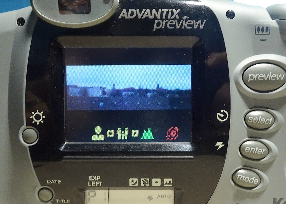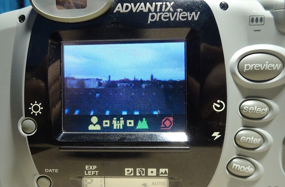 Das alles kann die Advantix Preview also auch. Die Zwitter-Fähigkeit begründet sich durch das Vorhandensein eines LCD-Displays an der Kamerarückseite. Dieses Display erhält von einem kleinen mit eingebauten Digital-Sensor der parallel gleichzeitig auch ein Bild speichert.