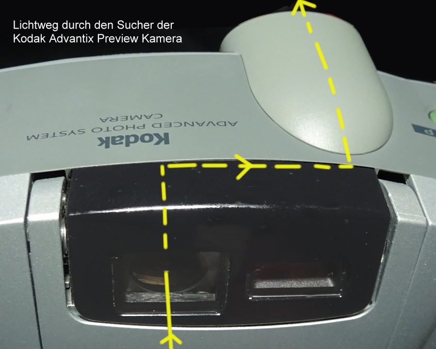 Das Sucherobjektiv und das Sucherokular befindet sich also nicht auf einer Achse.