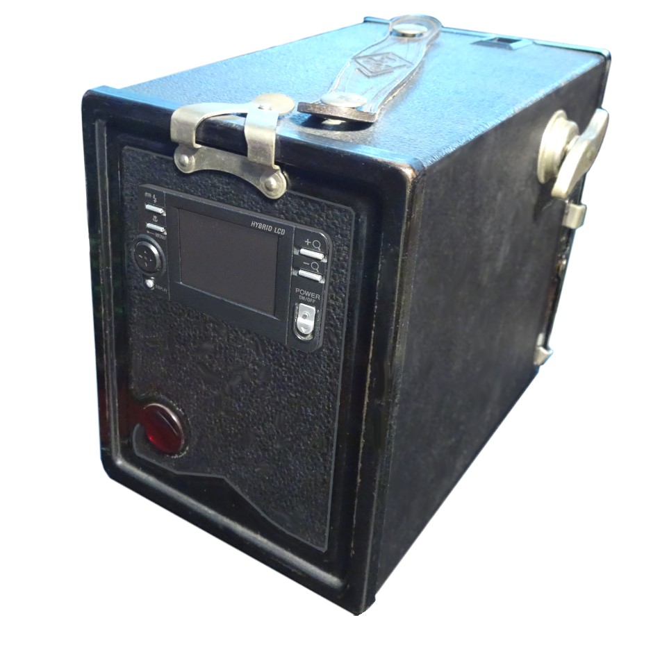 NACH der analogen Aufnahme durch Drücken der Preview-Taste kann zeitlich begrenzt angezeigt werden. Das digitale Bild bleibt auch nach Ausschalten der Kamera, bis zur nächsten Aufnahme betrachtbar (solange die Batterie Strom hat.