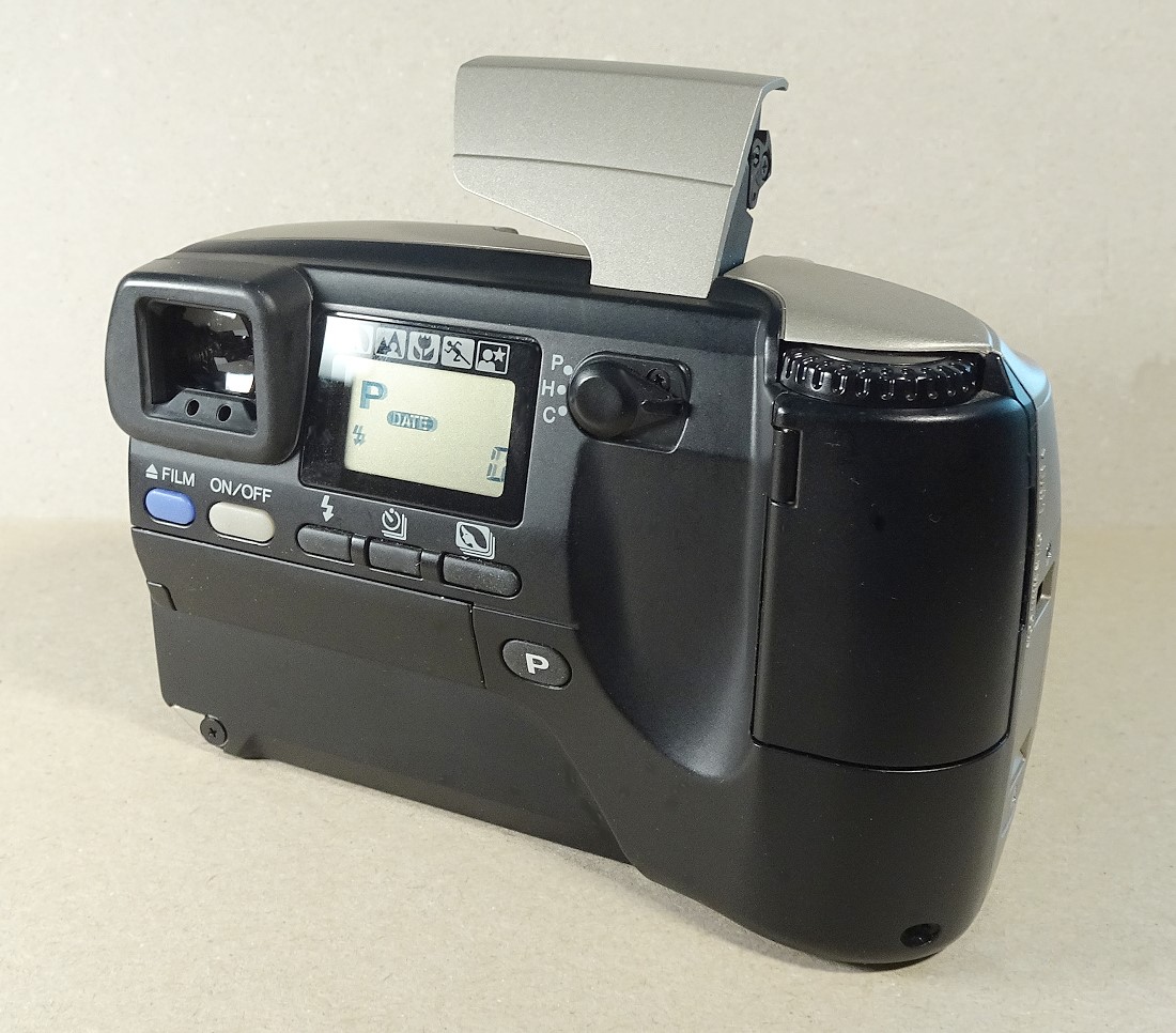 Sonstiges: Es werden zu jeder Aufnahme Datum und Uhrzeit gespeichert und später auf der Foto-Rückseite ausgedruckt (bei bestimmten Labors auch Einblendung ins Bild möglich). Selbstauslöser, IR-Fernbedienung optional, Stativgewinde, Serienbild-Funktion, Spritzwasser-Schutz, Trageschlaufen-Halterung. Belichtungsdaten-Magnetstreifen-Aufzeichnung auf Filmstreifen.