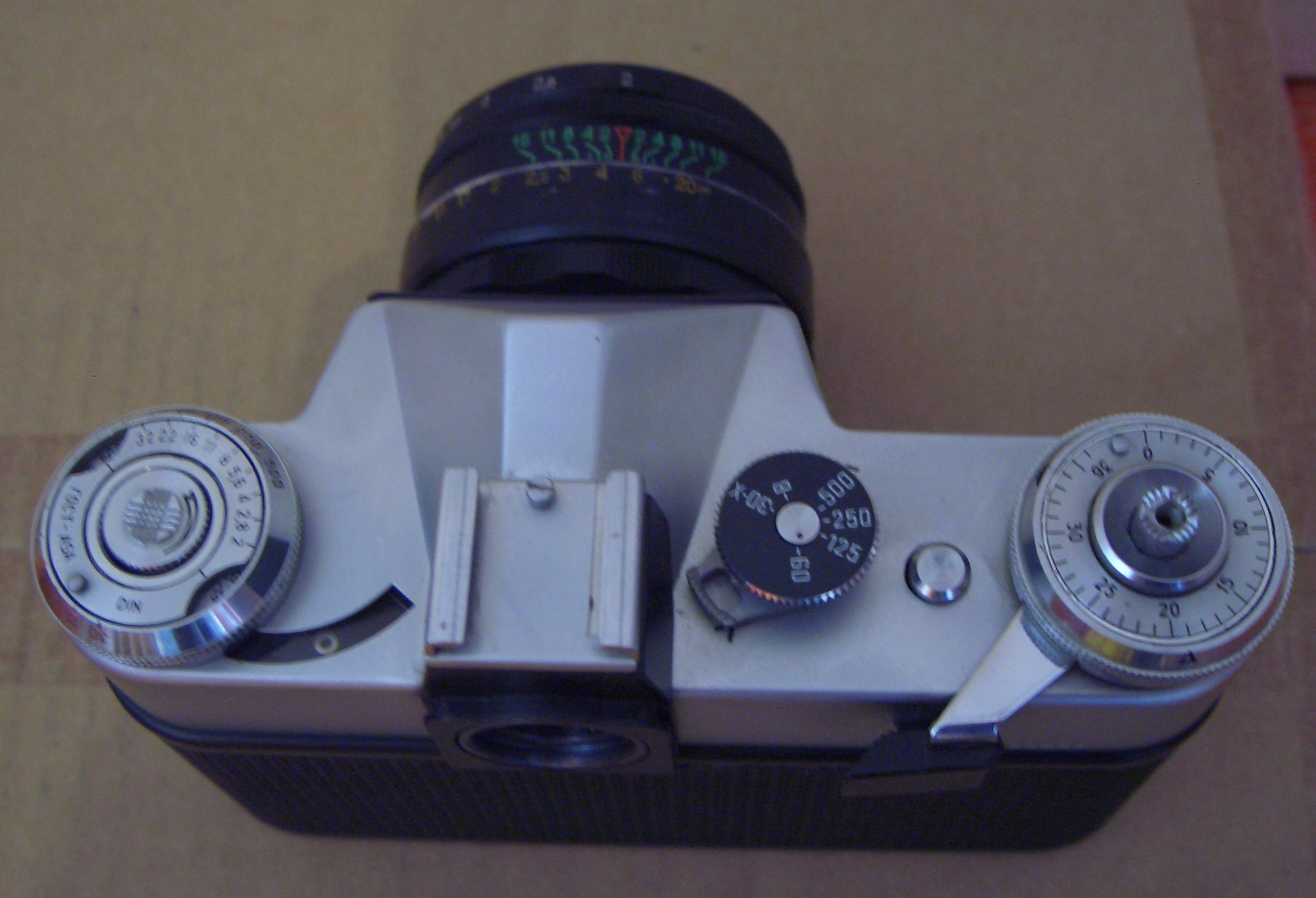 so eine habe ich auch als Zenit-B (ohne Belichtungsmesser) - mit dem Industar und einem original russ. Film "Foto 65" (20° DIN, 100 ISO, 65 GOST). Noch eine Ergänzung: der Schlitzverschluss war ein Tuchverschluss,keine Stahllamellen wie bei der reichlich doppelt so teuren Praktica.