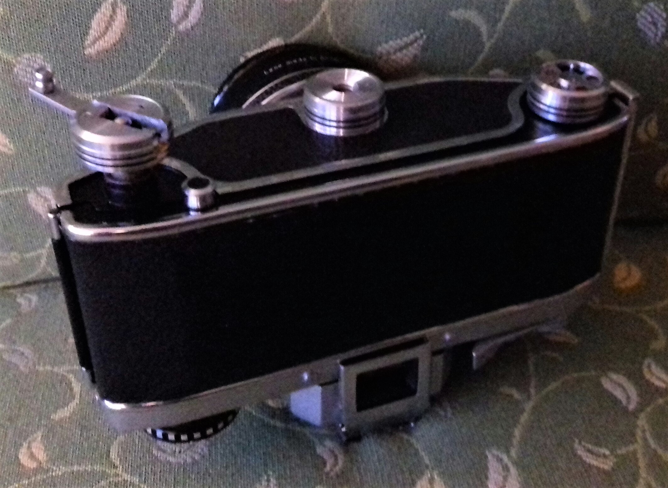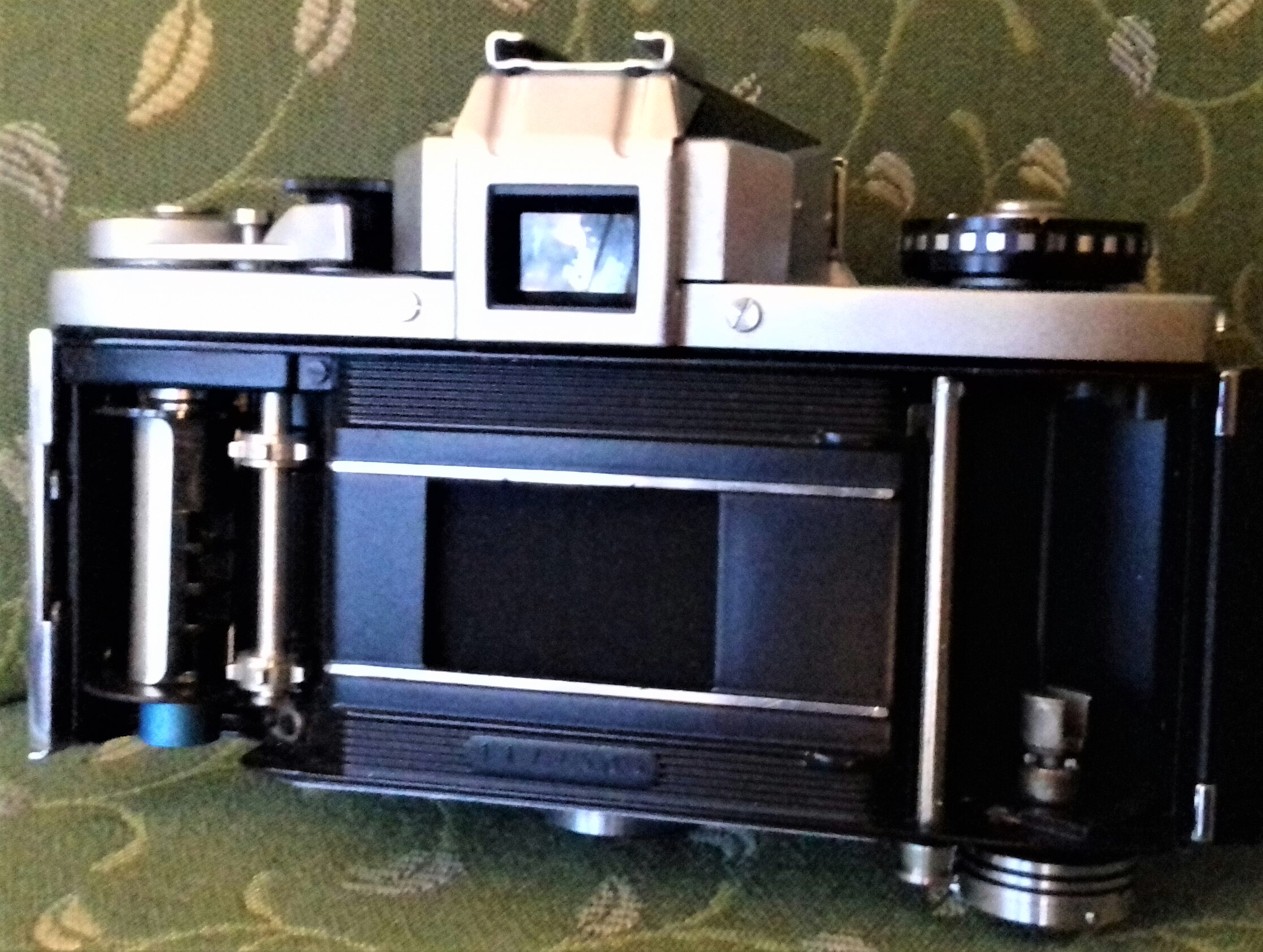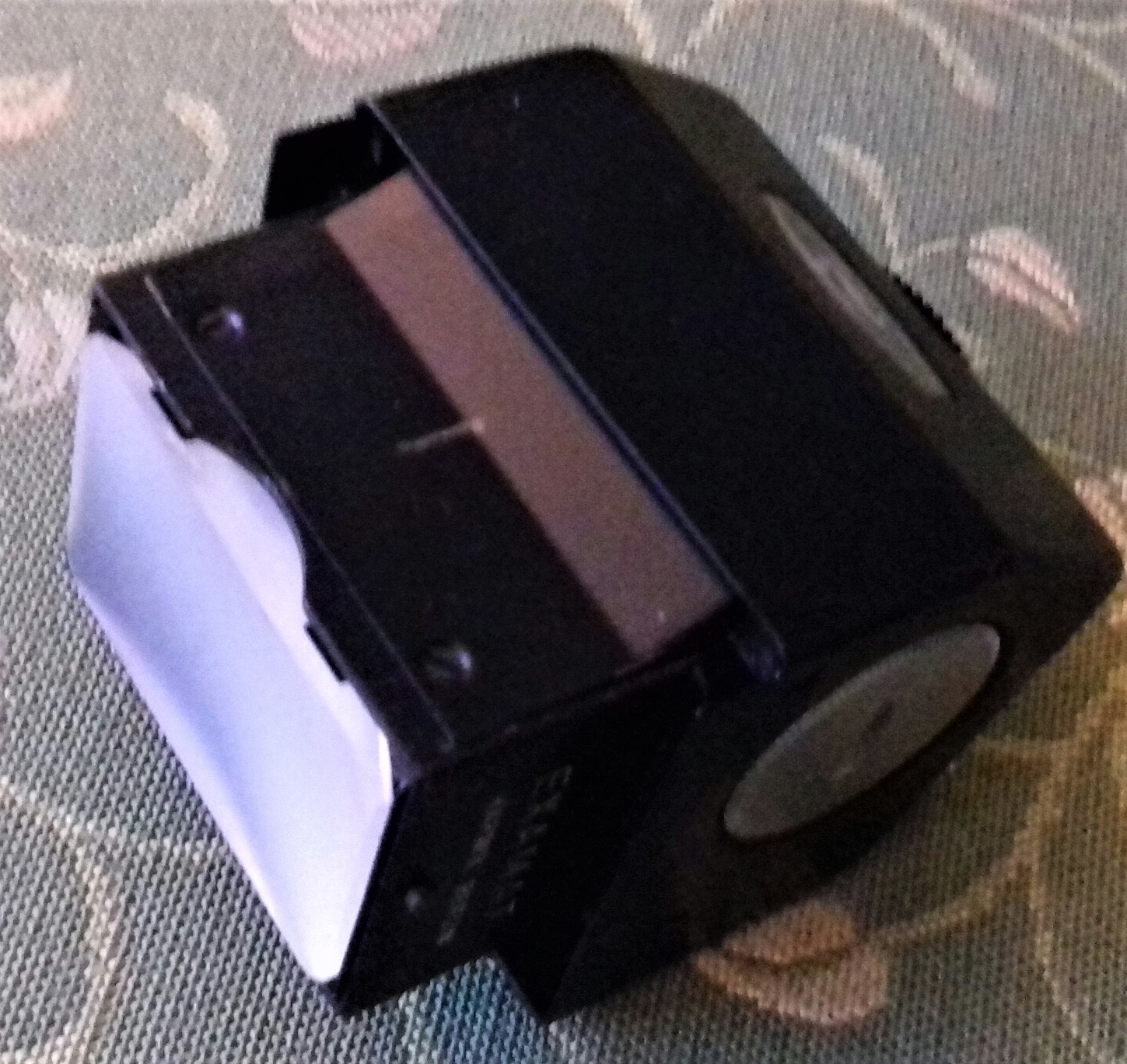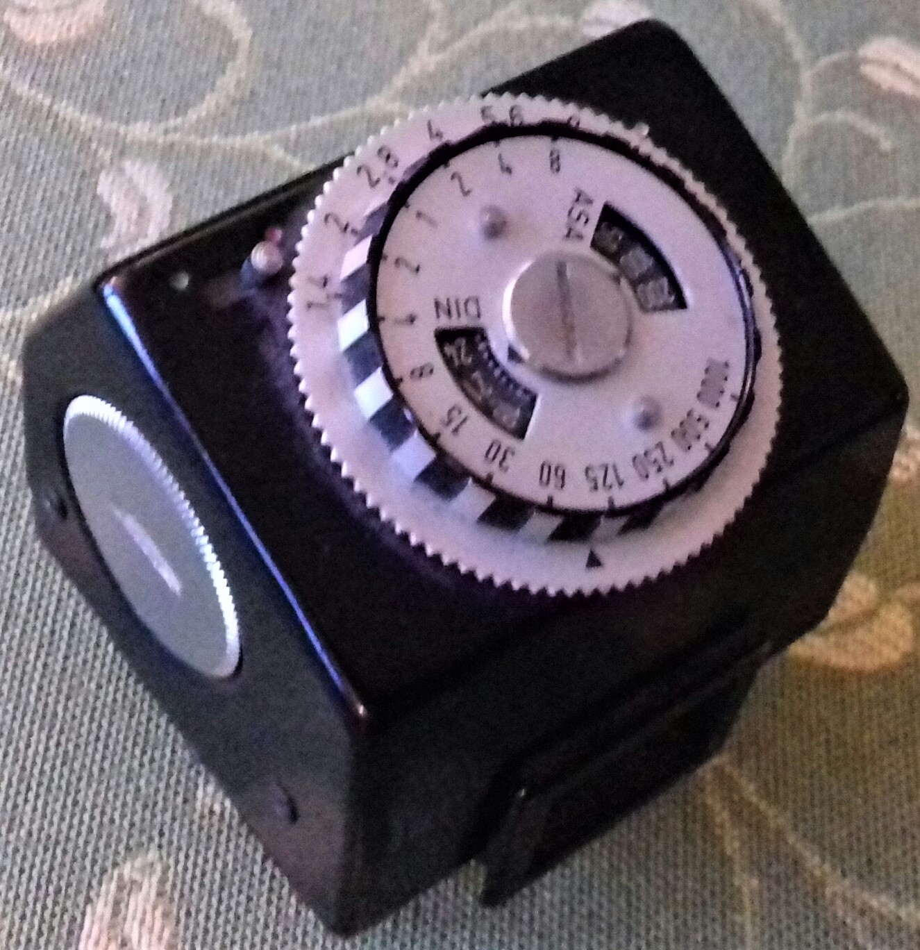 Zu meinem Modell habe ich noch ein TTL-Messprisma „Examat“ der Firma Harwix (Berlin) mit CdS-Fotowiderstand (ohne Messkeil). Ursprünglich musste als Stromquelle eine (heute nicht mehr erhältliche) „Mallory PX 13“ eingelegt werden. Es geht (ungeachtet der Spannungsproblematik) auch mit einer „625 PX“ oder einer „LR 44“ (dann allerdings nur mit Adapter). Ein Zeiger im Sucher zeigt durch mittige Position dann die richtige Zeit/Blenden-Kombination an. Insgesamt eine ziemlich klobige Kombination. Ich muss gestehen, dass ich da doch lieber mit dem Handbelichtungsmesser arbeite.