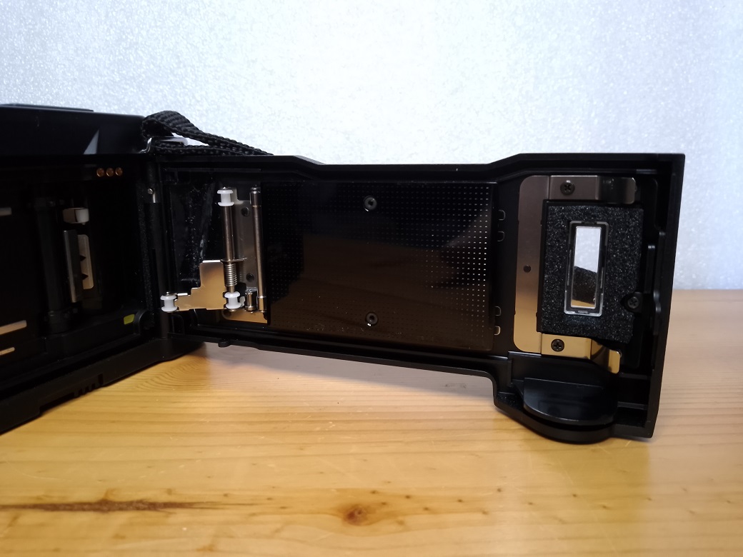 Rückseite: klappbare Rückwand mit Filmandruckplatte und Sichtfenster,