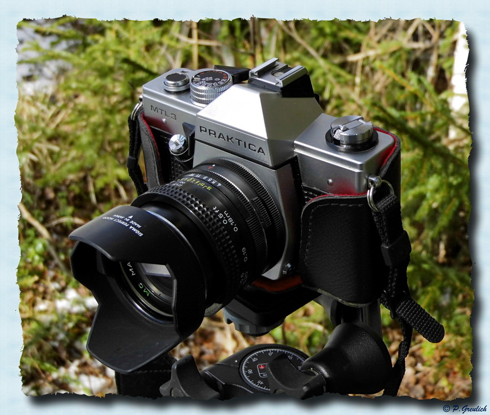 Meinen persönlichen Zugang zu diesem System habe ich mir durch zwei Kameras ermöglicht. Zwei Prakticas genauer gesagt, eine MTL 5b und eine MTL 3. Beide Kameras sehen äußerlich etwa gleich gut aus, aber die MTL 3 besitzt im Gegensatz zu ihrer jüngeren Schwester einen sauberen Sucher. Deshalb benutze ich sie lieber. Ich weiß, dass die paar Flunkies auf den Bildern nicht zu sehen sind...aber sie stören mich pingeligen Kerl doch erheblich beim Durchsehen und lenken mich sogar vom eigentlichen Motiv ab. Sicher eine Marotte von mir, aber was soll ich machen? Im Leben muss man schon genug Kompromisse eingehen, da sollte doch wenigstens im Hobbybereich alles so sein, dass man auch wirklich Spaß daran hat, finde ich.