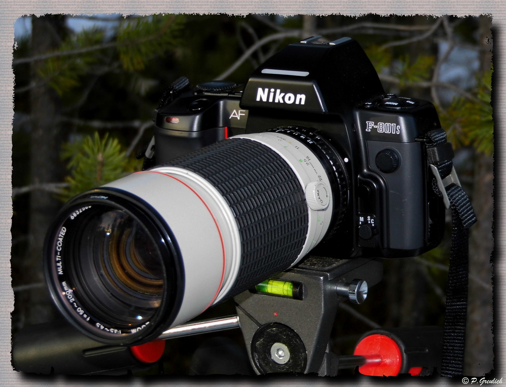 Hier wieder ein paar Daten zur F801s Auf dem Markt: von 1991 bis 94, als Nachfolgerin der F801 Verschluss: Aluminiumlamellen Verschlußsteuerung: Quarzgesteuert Verschlußablauf: Vertikal Belichtungssteuerung: Manuell, Blenden-, Zeit- und Programmautomatik Belichtungs-Korrektur: +5 EV / -5 EV Verschlußzeiten: 1/8000 - 30s, B Synchronzeit: 1/250 s Meßwertanzeige im Sucher: LCD Meßmethode: Matrixmessung 75/25% Meßbereich: EV 0 bis +20 Meßzellen: SPD (5 Zonen) ISO-Bereich 6-6400 Meßwertspeicher: Ja Einstellscheibe: Auswechselbar Sucheranzeigen: Belichtungsmesser, Verschlusszeit, Blende Sucherbeleuchtung: Ja Sucher-Bildfeld: 92% TTL-Blitzsteuerung: Ja Mehrfachbelichtung: Ja Spiegelarretierung: Nein Abblendtaste: Ja Abmessungen: 102 x 153 x 67 mm Gewicht: 695g