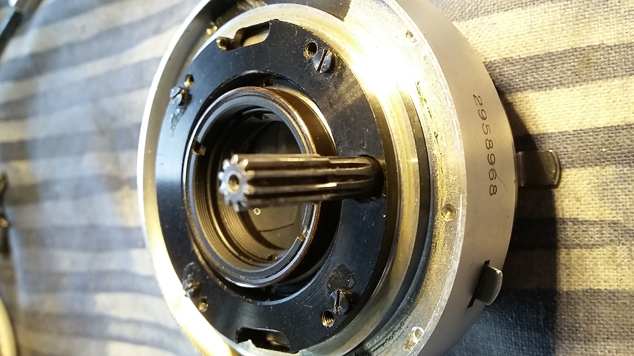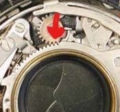 Hallo miteinander, Da ist ein Problem. Im Verschluss ist der "Aufzieh-Stift", in Ruhe-Stellung mit dem Messing-halbmondförmigen Zahnrad mit dem ersten Zahn in der ersten Zahnreihen-Lücke des Spannrings.