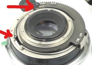 Hallo, nach dem der Verschluss gespannt ist, bleibt der Verschluss geschlossen. Beim Auslösen stimmen aber alle Zeiten. Wenn der graue Spannring (roter Pfeil oben) gespannt ist, kommt er noch nicht einmal an den Stift (roter Pfeil unten) der außen herumlaufenden Bügel-Feder heran. (Bild 1)