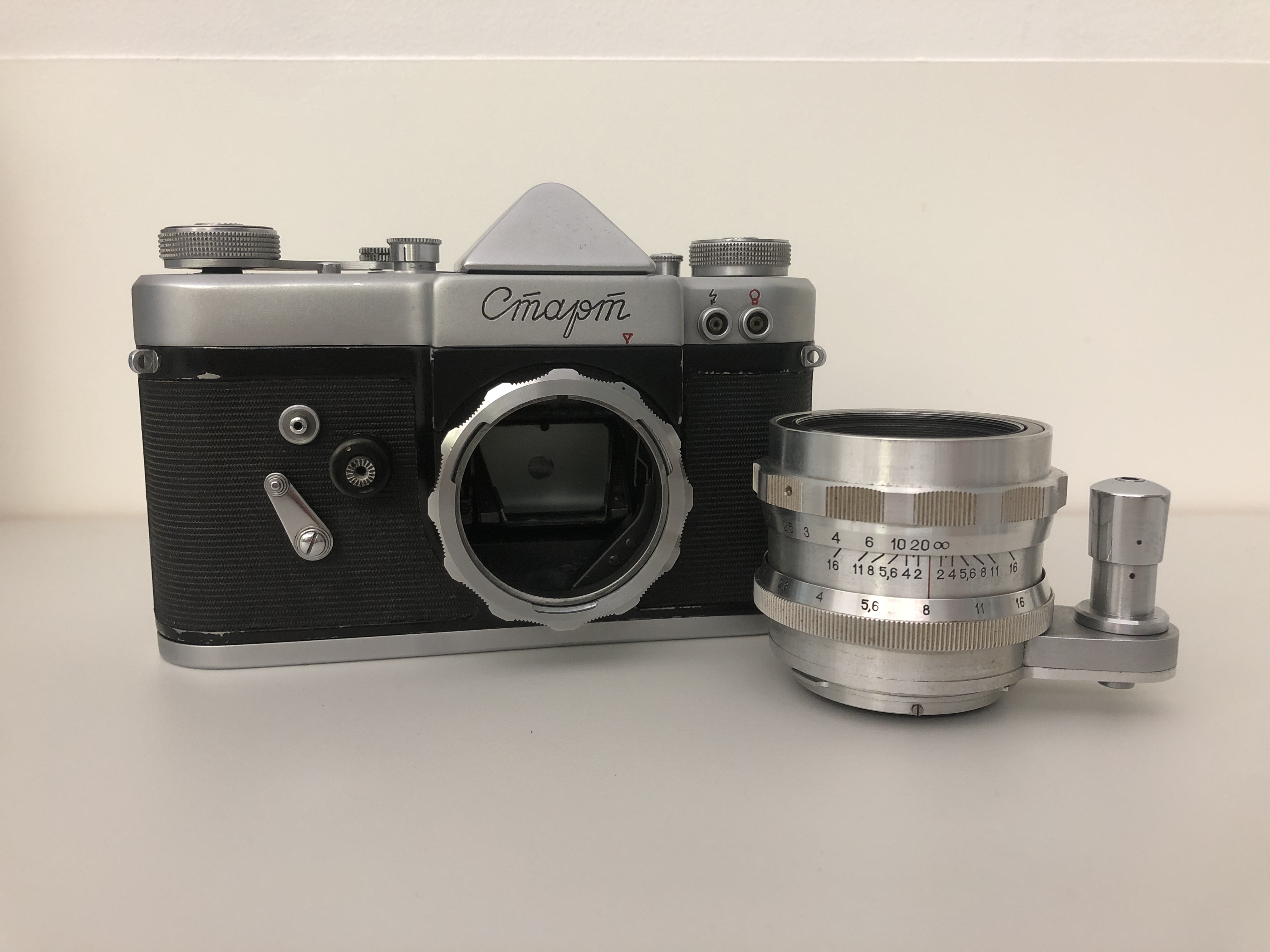 • Baujahr: 1958-1964 (ca. 70.000 Ex.) • Hersteller: KMZ (Krasnogorski Mekhanicheskii Zavod, UdSSR) • Format: KB (24 x 36mm) • Objektivanschluss: Bajonettanschluss (mit Anziehring) • Objektiv: „Helios-44-2“ (2/58) • Blenden: 2 bis 16 • Verschluss: horizontal laufender Tuch-Schlitzverschluss • Belichtungszeiten: B, 1, 1/2, 1/4, 1/8, 1/15, 1/60, 1/125, 1/250, 1/500, 1/1000; das Zeitenrad dreht sich beim Spannen mit (nur zu bewegen, wenn die Kamera zuvor gespannt wurde!) • Fokussierung: 0,7 m bis ∞ (manuell) • Blitz: 2 Synchronkontakte (Einstellsymbole ‚Blitz‘ und ‚Lampe‘) • Belichtungsmesser: --- • Filmzählwerk: Zählrad (umgibt den Auslöser), vorwärts zählend • Sucher: Prismensucher (Schnittbildentfernungsmesser), gegen Schachtsucher austauschbar • Filmtransport: Schnelltransporthebel • Selbstauslöser: ja, Hebel auf der Kamerafront, wird mit separatem, darüber liegendem Auslöseknopf gestartet (benötigte Blende muss vor dem Auslösen durch Drehen des großen Auslösestiftes fixiert werden!) • Filmtyp-Merkscheibe: ja (mit den russischen GOST- Filmempfindlichkeitsintervallen 11 - 22 - 45 - 90 - 180 - 350) • Rückspulmechanismus: Entriegelung mittels eines Knopfes zwischen Auslöser und Zeitenrad • Batterie: --- • Besonderheiten: abnehmbare Rückwand; Beschriftung kyrillisch „смарм“, beim Exportmodell lateinisch „Start“ (Schreibschrift); eingebauter Filmschneider und Metallkapsel zur Aufnahme des belichteten Filmstreifens (!); Druckblende; riesiger Auslöser (der „Exakta“ vergleichbar) • Zubehör: Bereitschaftstasche