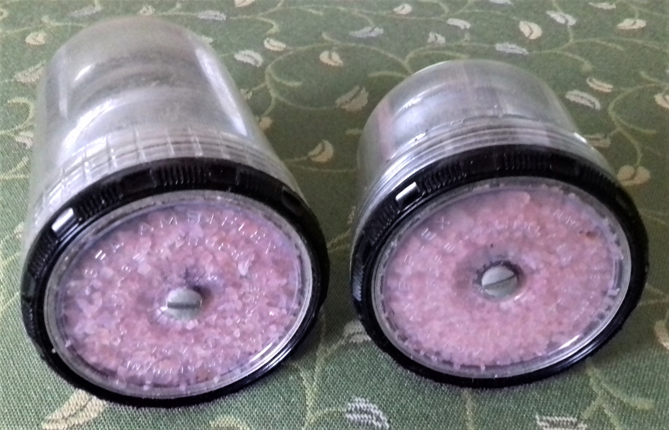 Clack1967:Besonders interessant sind auch die verschraubbaren Tropenbehälter für die Objektive, die am Boden rosa Kieselgel-Kügelchen enthalten, die stark wasseranziehend sind und die Feuchtigkeit in den Behältern binden. Oft fehlen die Kügelchen heute leider und die Bodenkammer ist leer.