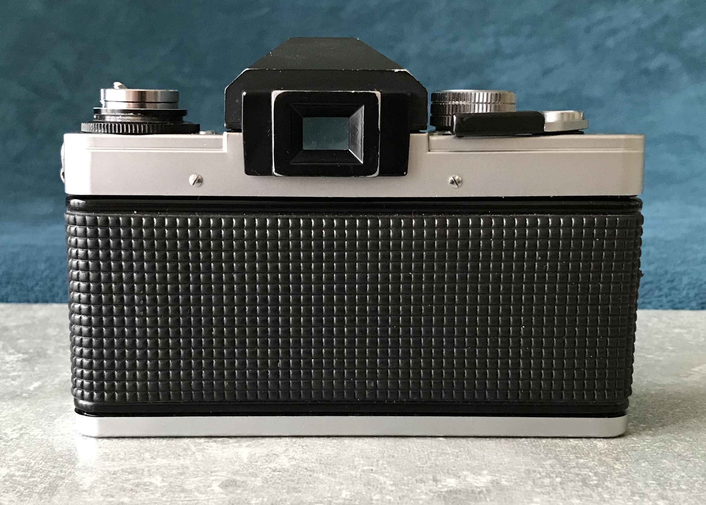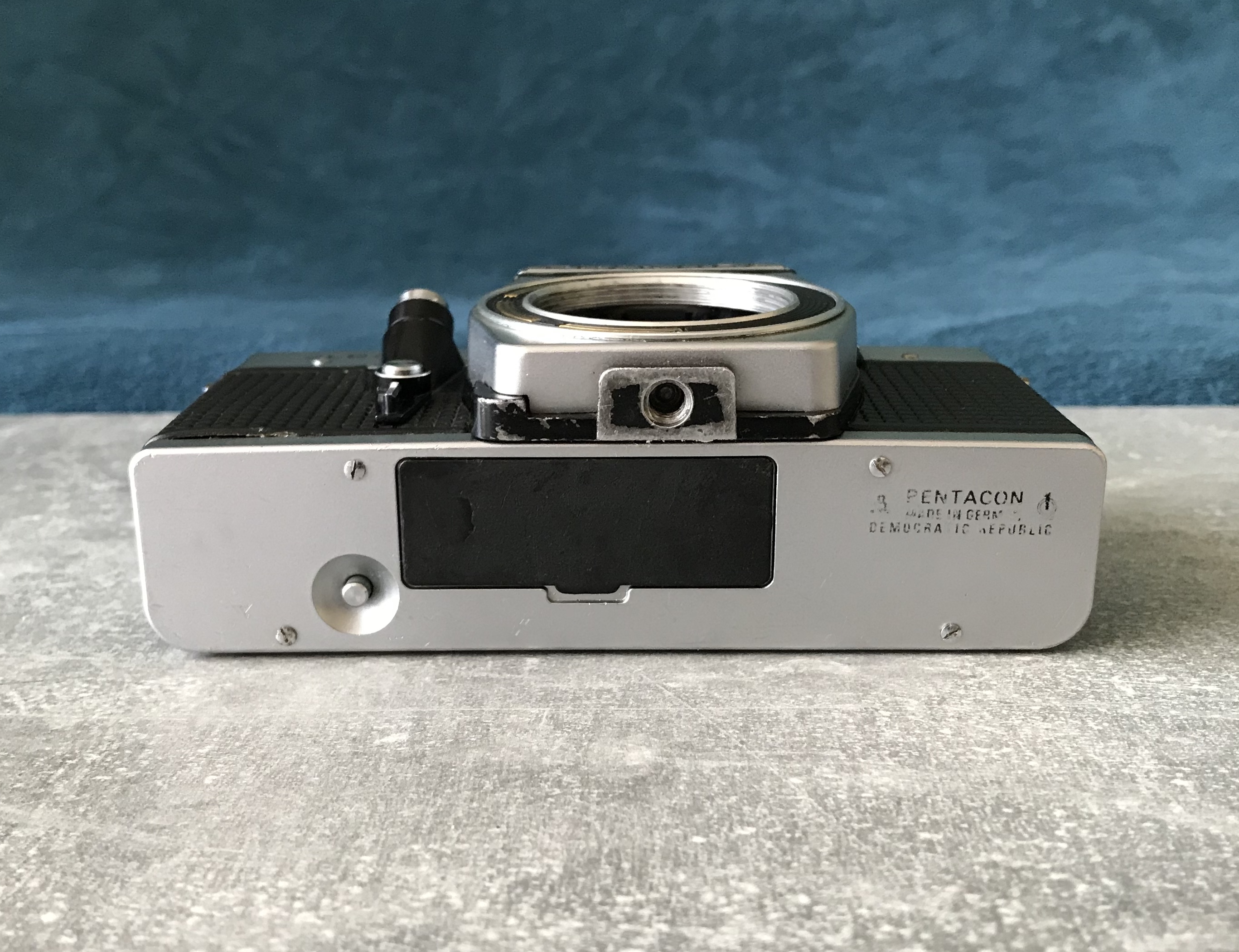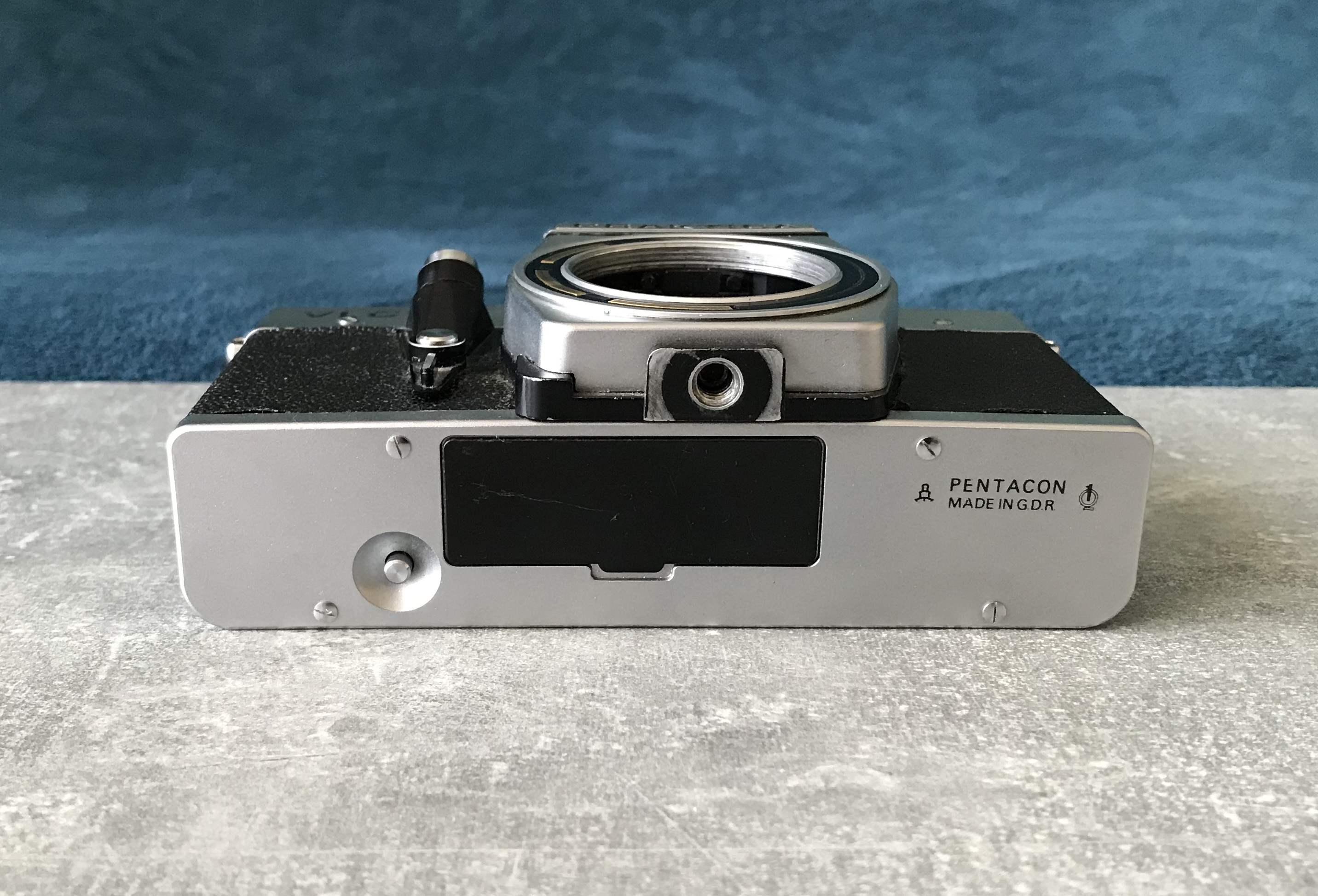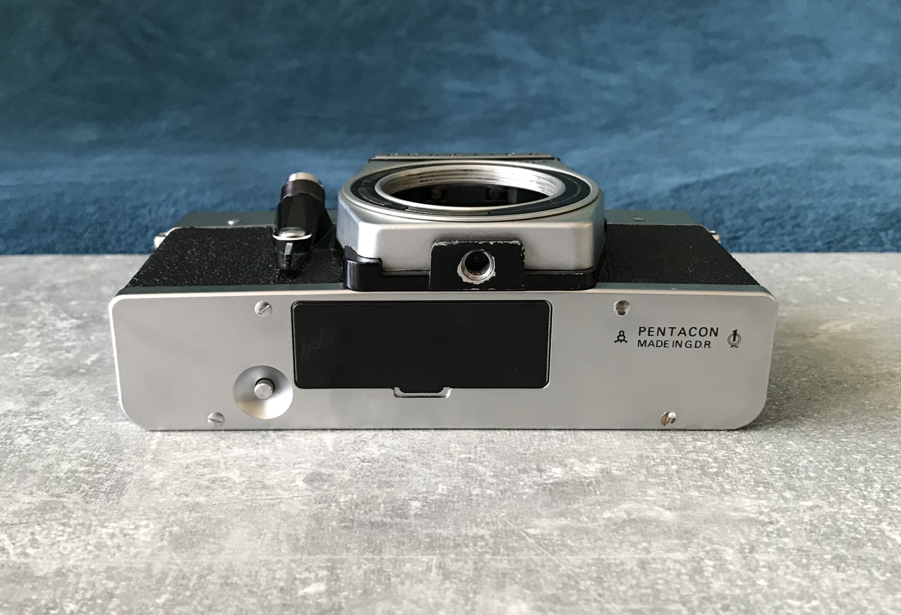 Trivia: falls die Belichtungsmessung der Kamera defekt sein sollte kann man sich mit einem Messprisma der Exakta RTL 1000 behelfen, dieses passt ebenfalls in die VLCs. --- Bei dieser herstellerseitig nicht vorgesehenen Kombination lässt sich der Zeitenknopf nicht betätigen! Bleibt gesund!