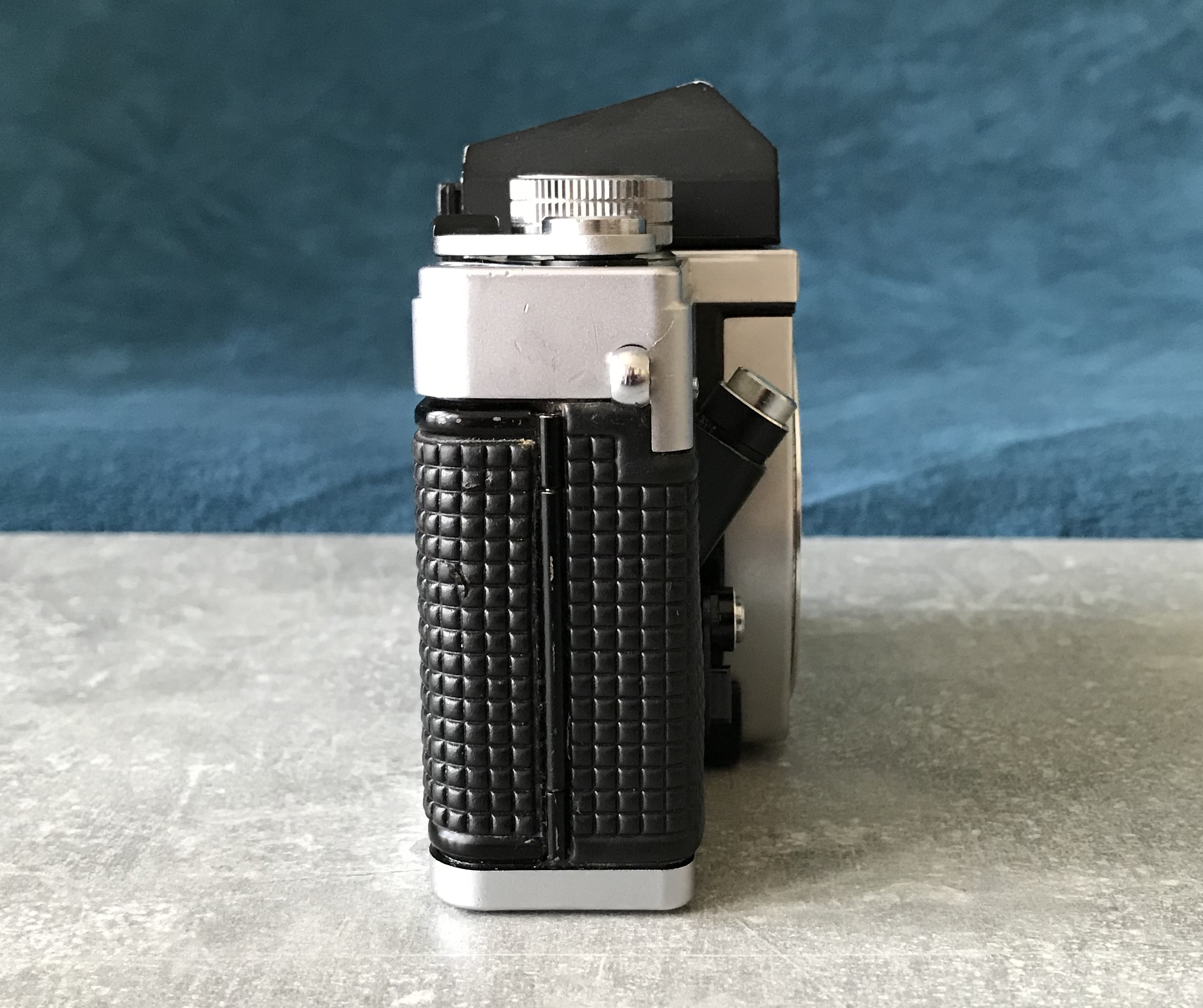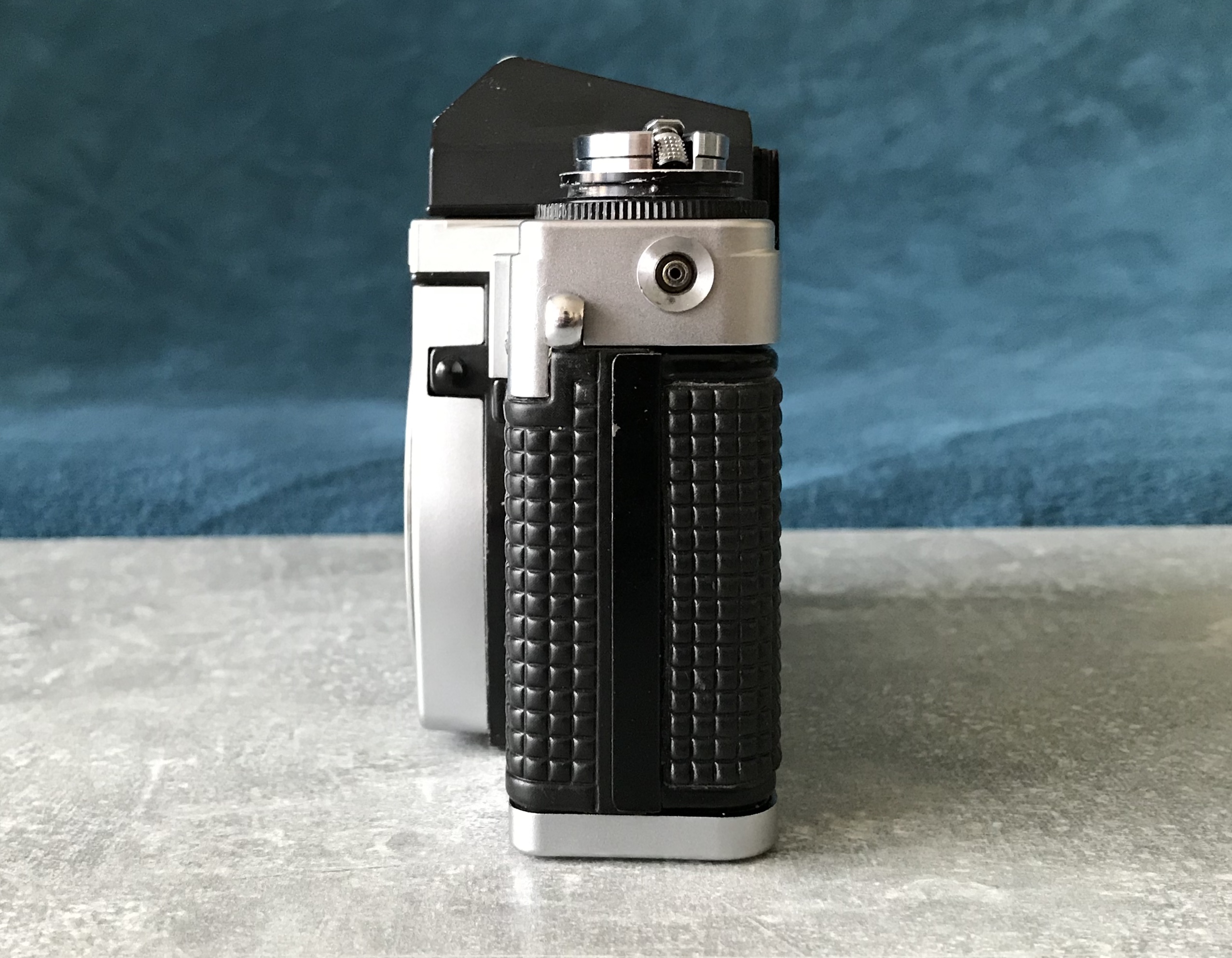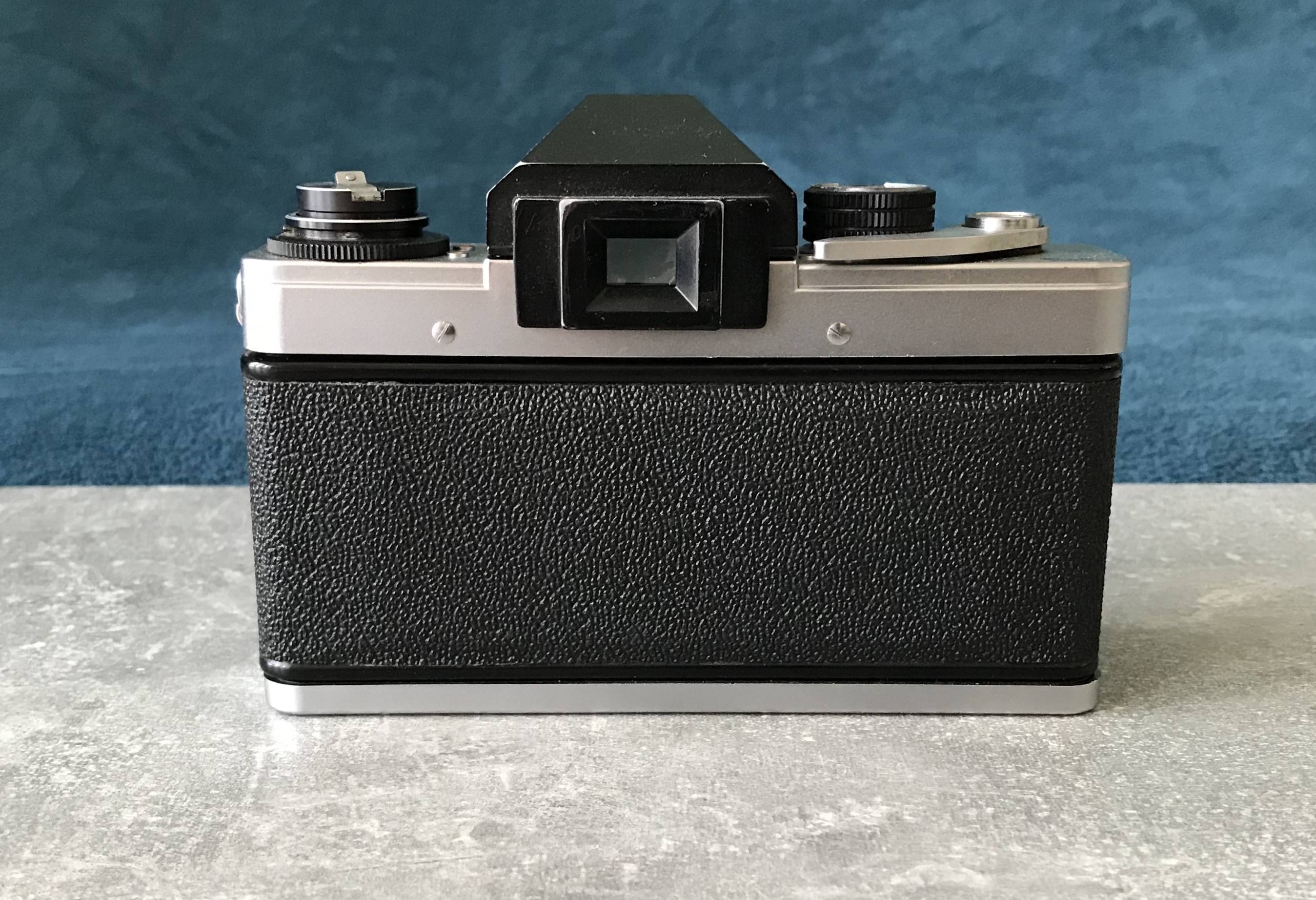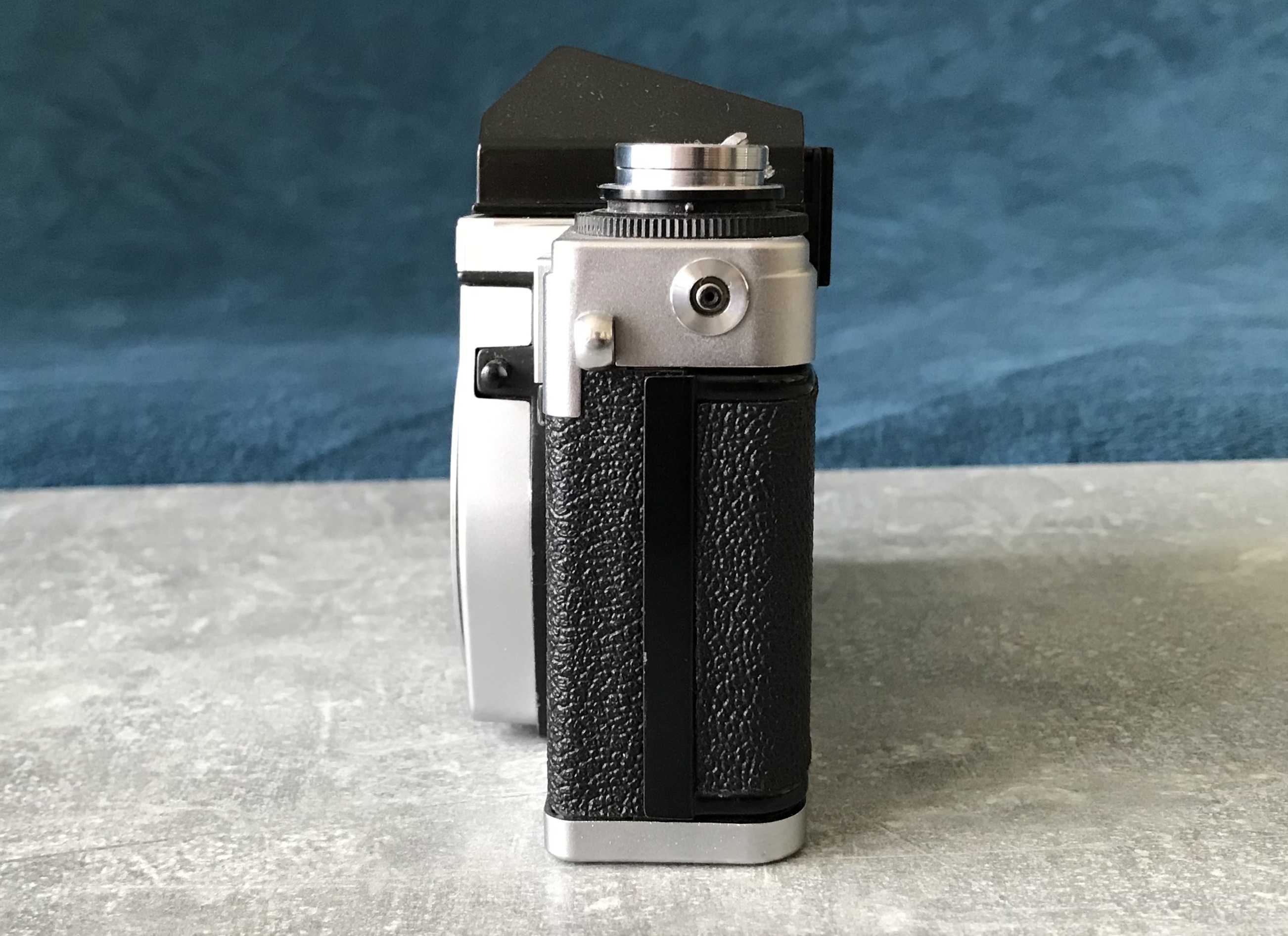 Trivia: falls die Belichtungsmessung der Kamera defekt sein sollte kann man sich mit einem Messprisma der Exakta RTL 1000 behelfen, dieses passt ebenfalls in die VLCs. --- Bei dieser herstellerseitig nicht vorgesehenen Kombination lässt sich der Zeitenknopf nicht betätigen! Bleibt gesund!