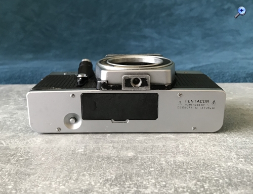 Trivia: falls die Belichtungsmessung der Kamera defekt sein sollte kann man sich mit einem Messprisma der Exakta RTL 1000 behelfen, dieses passt ebenfalls in die VLCs.