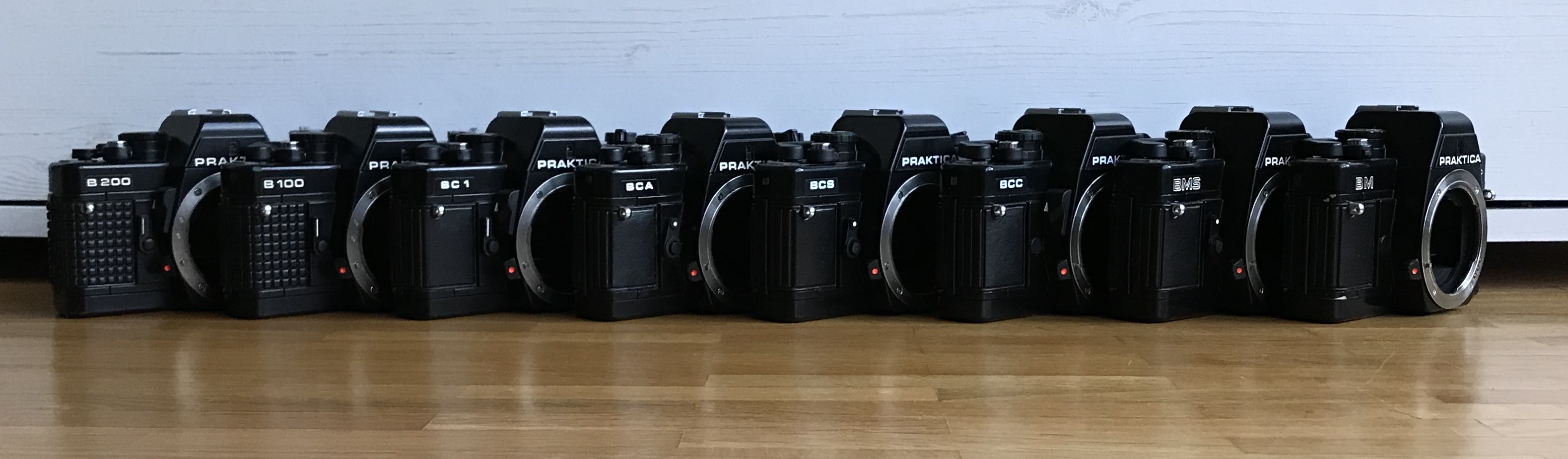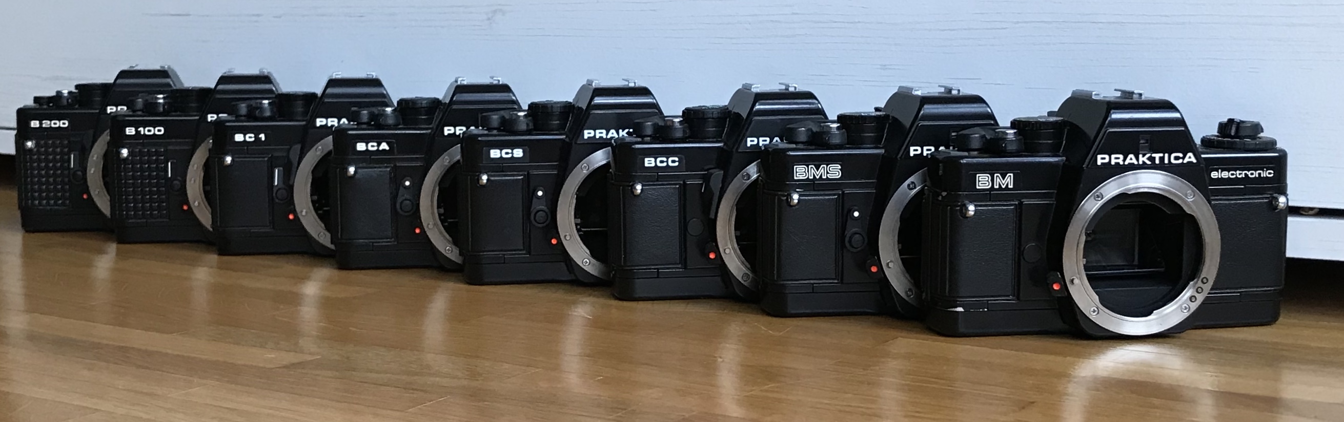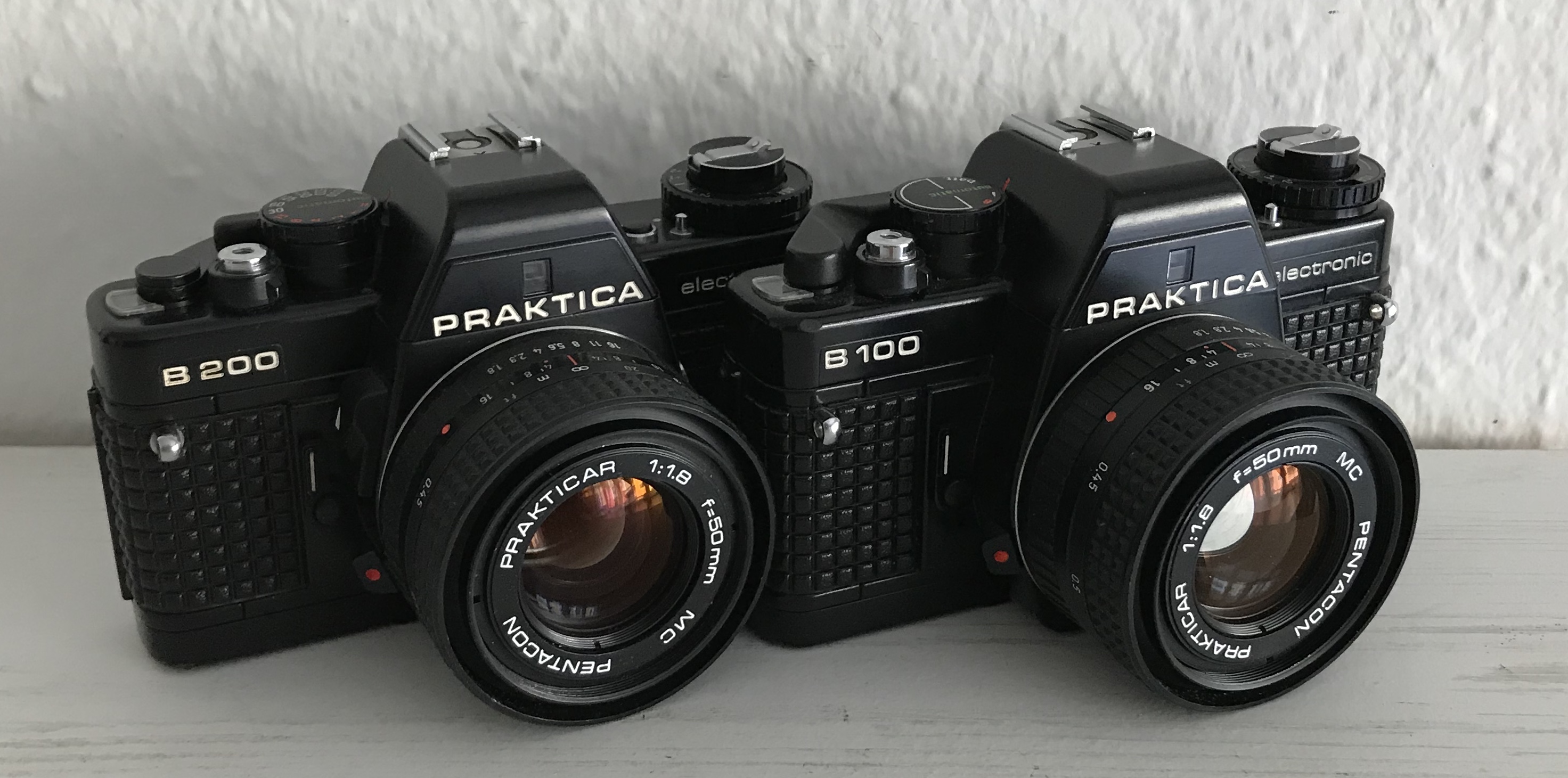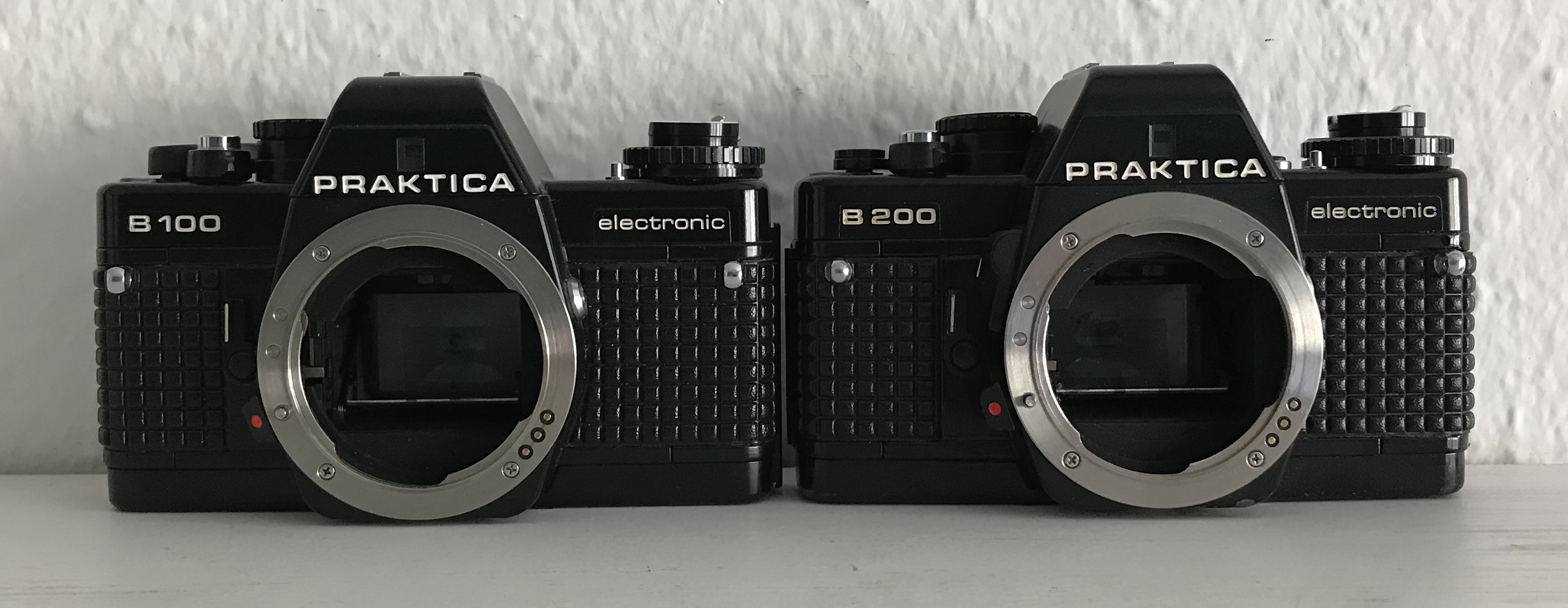weiter geht es mit der Vorstellung der Prakticas, heute mit der B-Reihe. Die Kameras dieser Reihe waren allesamt Spiegelreflexkameras mit elektronisch gesteuertem Metalllamellenschlitzverschluss. Man wandte sich auch vom M42-Anschluss ab und ging auf ein eigenes Bajonett mit 44,4mm Auflagemaß über. Ebenfalls verkleinerte man die Abmessungen der Kameras und das Design wurde ein letztes Mal grundlegend überarbeitet. Zum ersten Mal gab es die Möglichkeit Computerblitzgeräte zu verwenden (Modelle BMS, BM, BCS, BCC, BCS und BC 1) durch einen zusätzlichen Kontaktpin im Hot-Shoe. Für mich optisch mit die schönsten Prakticas sind die B 200 / B 100 mit genopptem Bezug welche auch hinsichtlich Ihrer Ausstattung und Handhabung immer noch voll alltagstauglich sind.