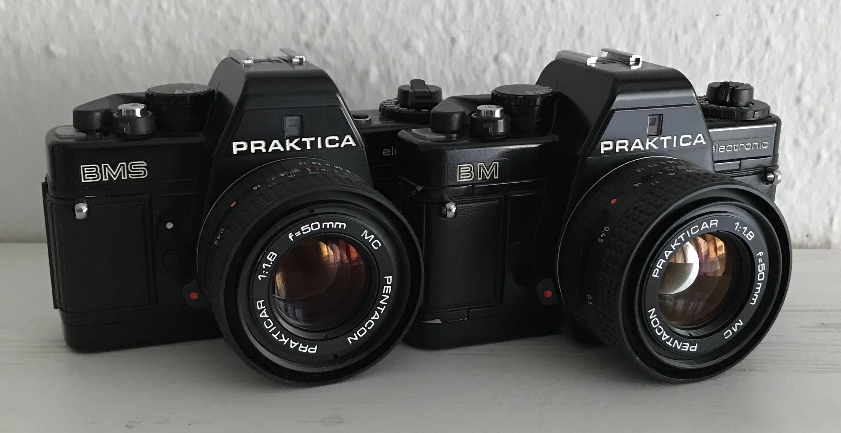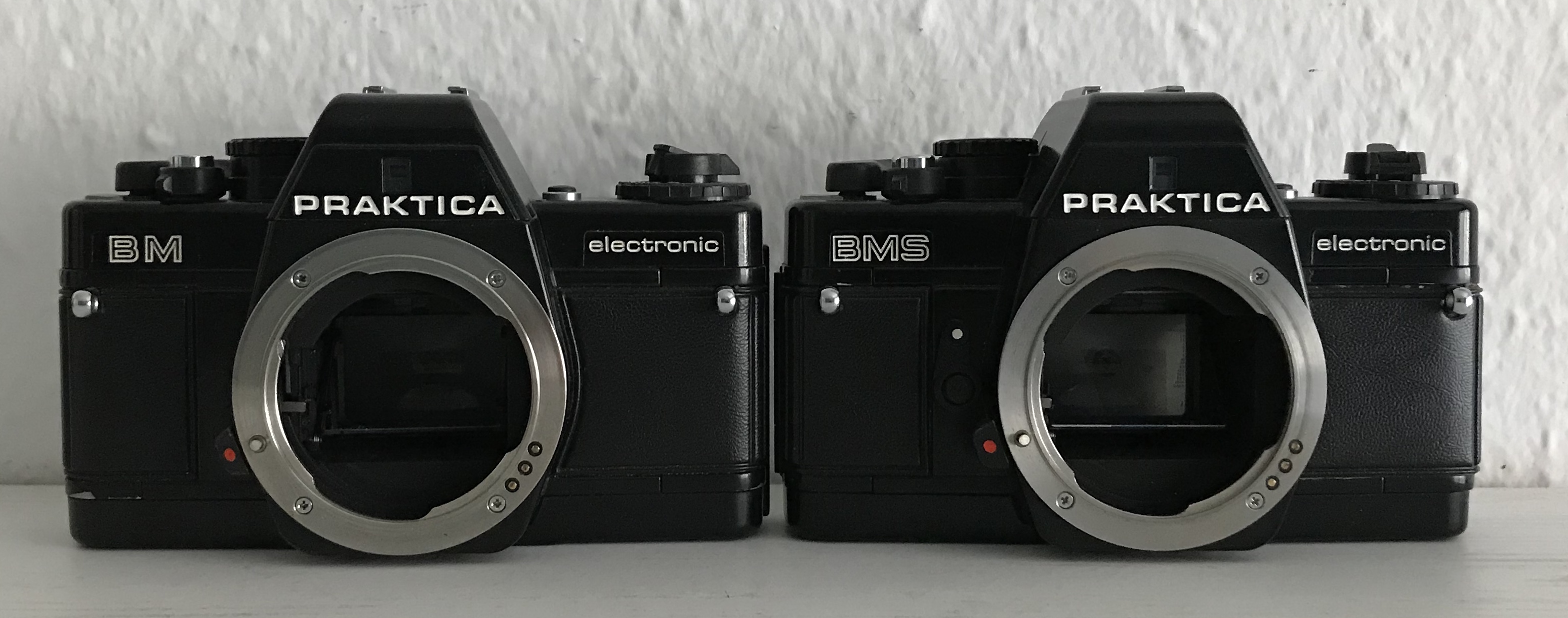 Hersteller: Kombinat VEB Pentacon Dresden Typ: Praktica BMS / BM Baujahr: 1989 - 1990 (meine Kameras zwischen 22.10.1990 und 28.10.1990 sowie zwischen 22.01.1990 und 28.01.1990) Verschluss: elektrisch gesteuerter horizontaler Metalllamellenschlitzverschluss (B, 4s - 1/1000s) Objektivanschluss: Praktica B Belichtungsmessung: TTL-Innenmessung mit Lichtkonzentrator und halbdurchlässigem Spiegel (Belichtungskorrektur +/- 2 EV) Blitzanschluss: Hot-Shoe in Prismenkappe, computerblitzfähig Besonderheiten: Vorlaufwerk (nur BMS), Stativgewinde, Blendeneinspiegelung