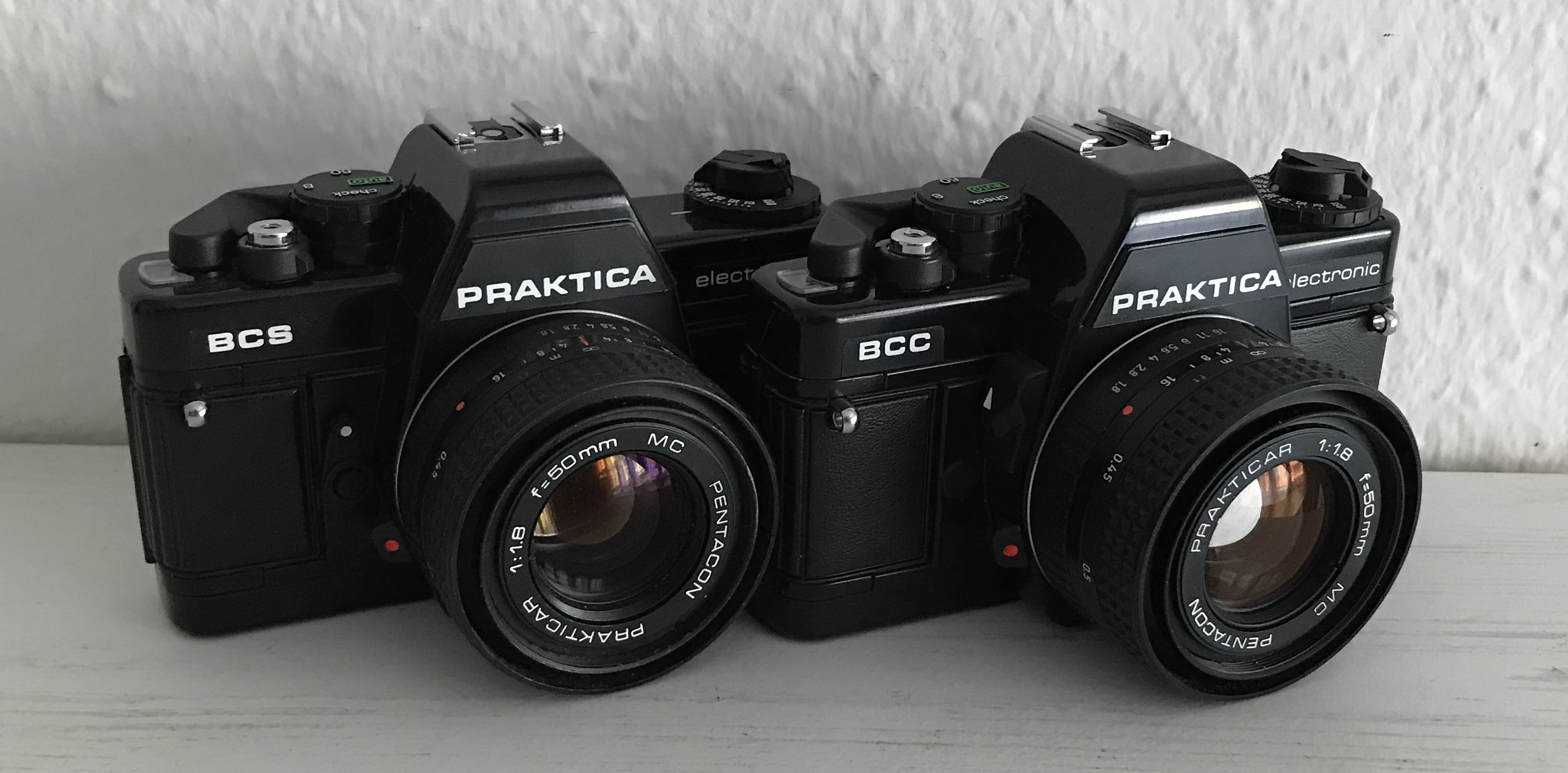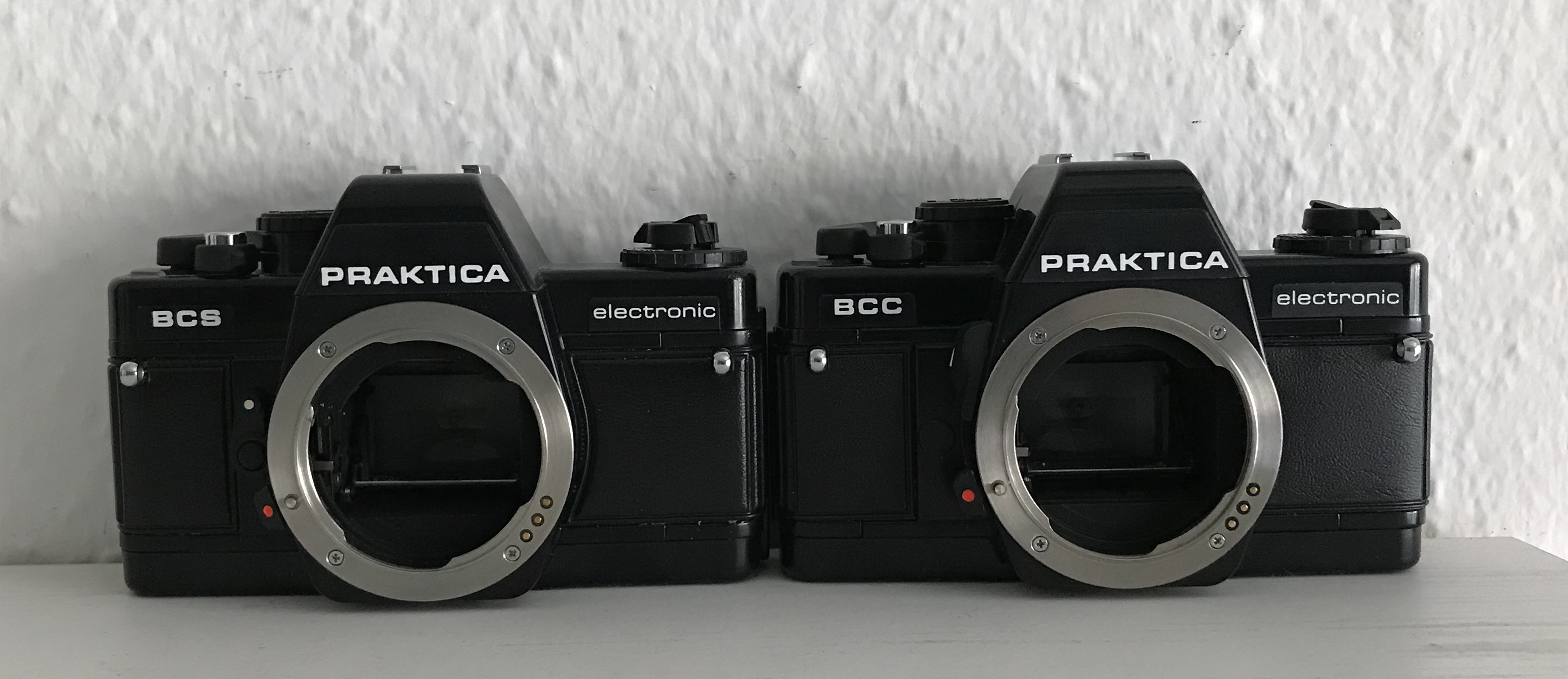 Hersteller: Kombinat VEB Pentacon Dresden Typ: Praktica BCS / BCC Baujahr: 1989 - 1990 / 1988 - 1990 (meine Kameras zwischen 22.10.1990 und 28.10.1990 sowie zwischen 29.01.1990 und 04.02.1990) Verschluss: elektrisch gesteuerter horizontaler Metalllamellenschlitzverschluss (B, A, 1/60s) Objektivanschluss: Praktica B Belichtungsmessung: TTL-Innenmessung mit Lichtkonzentrator und halbdurchlässigem Spiegel Blitzanschluss: Hot-Shoe in Prismenkappe, computerblitzfähig Besonderheiten: Vorlaufwerk (nur BCS), Stativgewinde, gegen Ende der Produktion Abblendtaste