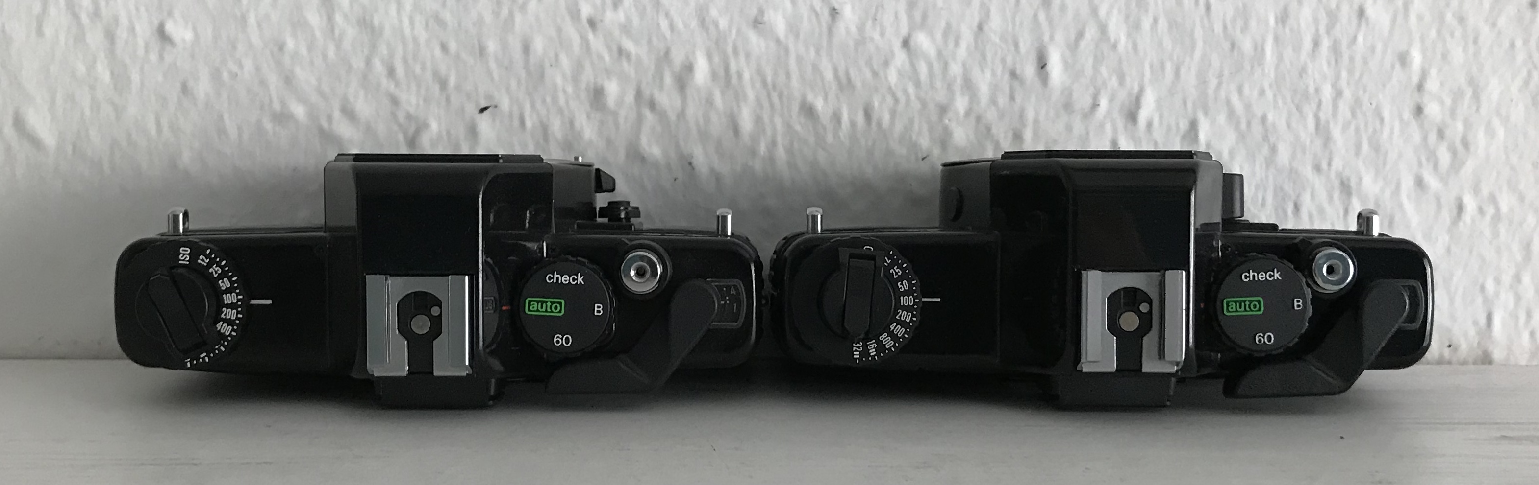 Beginnen wir mit den Schwestermodellen BCS / BCC, welche beide lediglich die Belichtungseinstellungen B, A (Automatik), 60 (manuelle Notzeit) und check (Batterieprüfung) besaßen. Sie waren die einfachsten Kameras der Reihe. Die BCC wurde 1988 aus der BCA entwickelt indem man diese einfach noch weiter abgespeckt hat indem man den Motoranschluss, die Blendeneinspiegelung, den Selbstauslöser und die Belichtungskorrektur wegließ. Mit der BCS machte man (vielleicht auf Verbraucherwunsch) einen Schritt zurück und verpasste der BCC wieder einen Selbstauslöser. Gegen Ende der Produktion 1990 bekamen beide Serien auch wieder eine Abblendtaste. Hergestellt wurden bis Produktionsende ungefähr 34000 BCS und 15000 BCC.