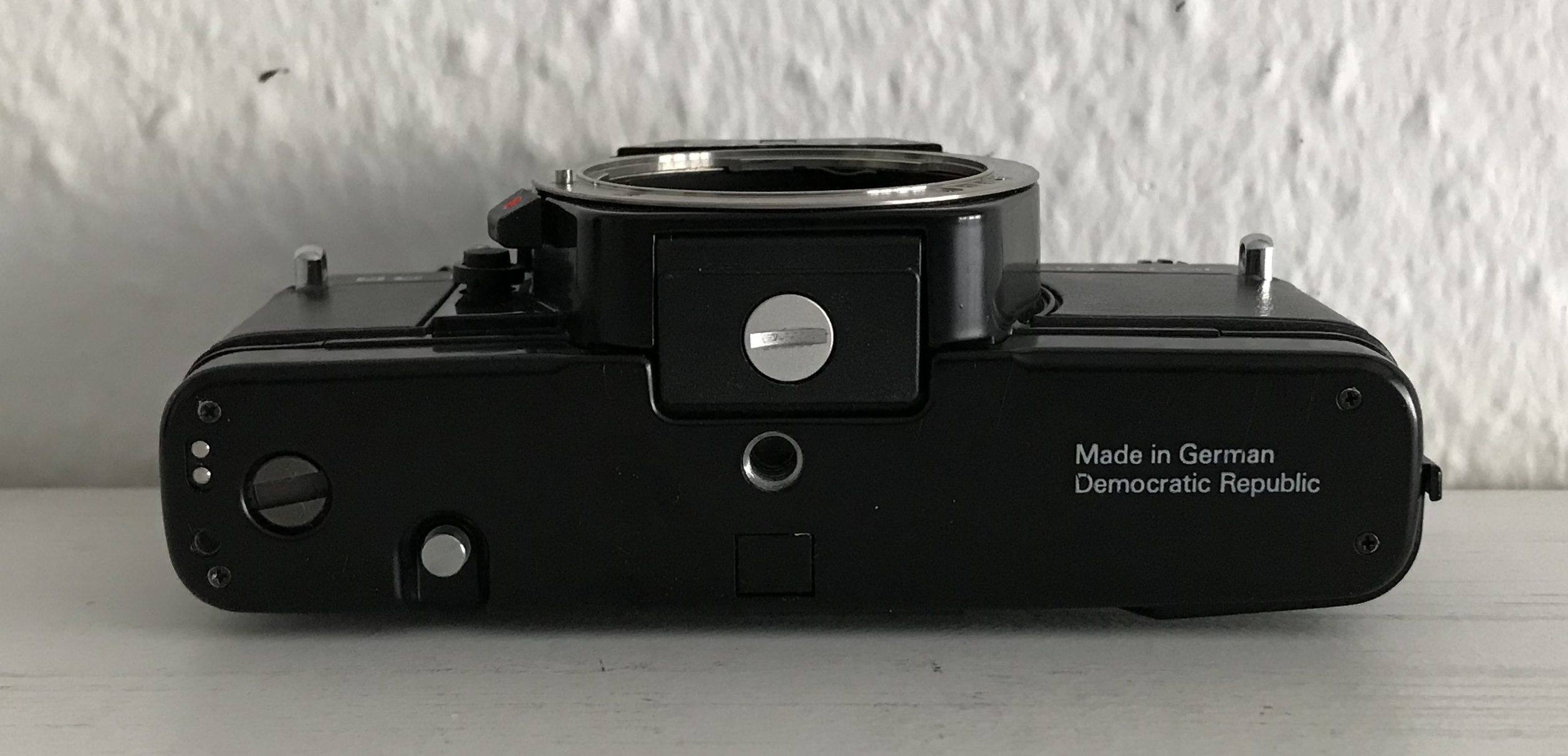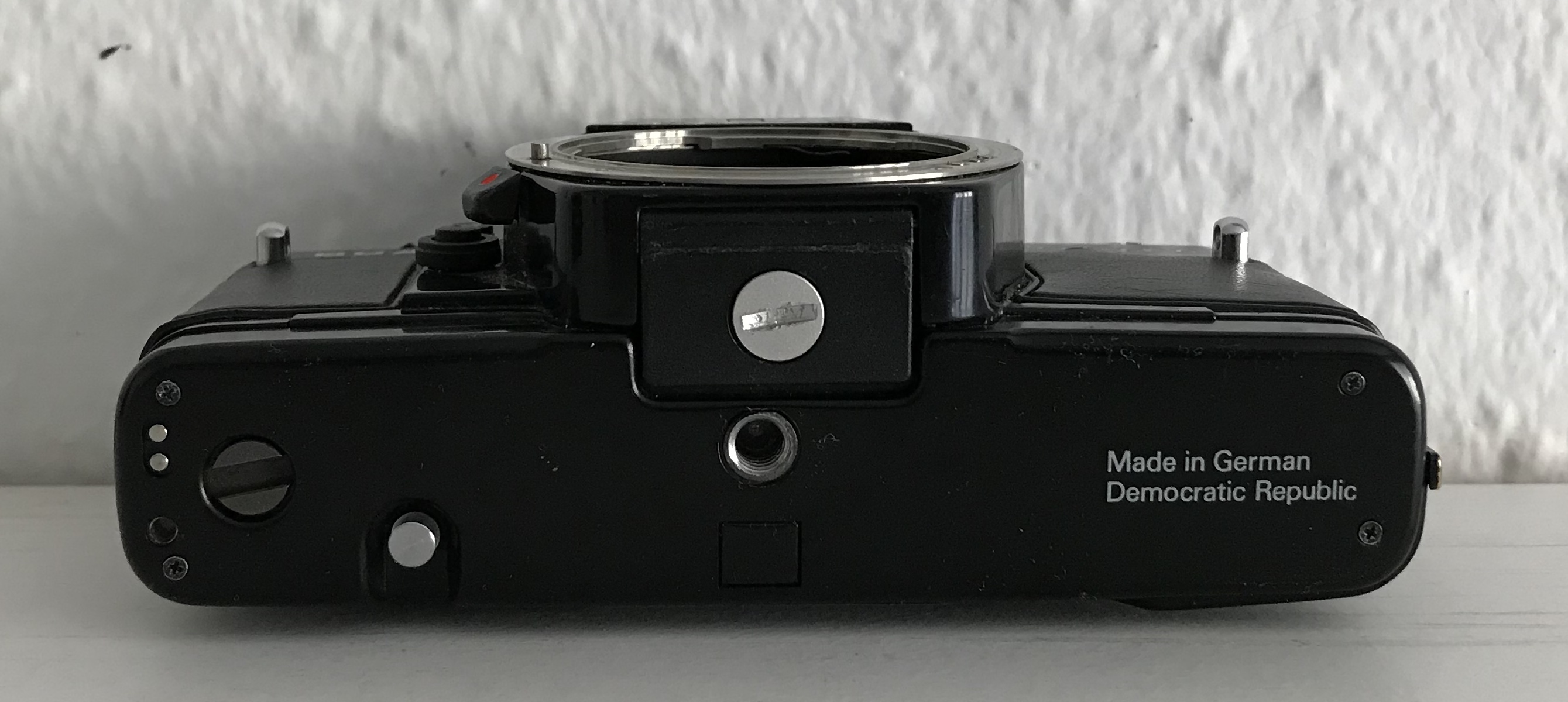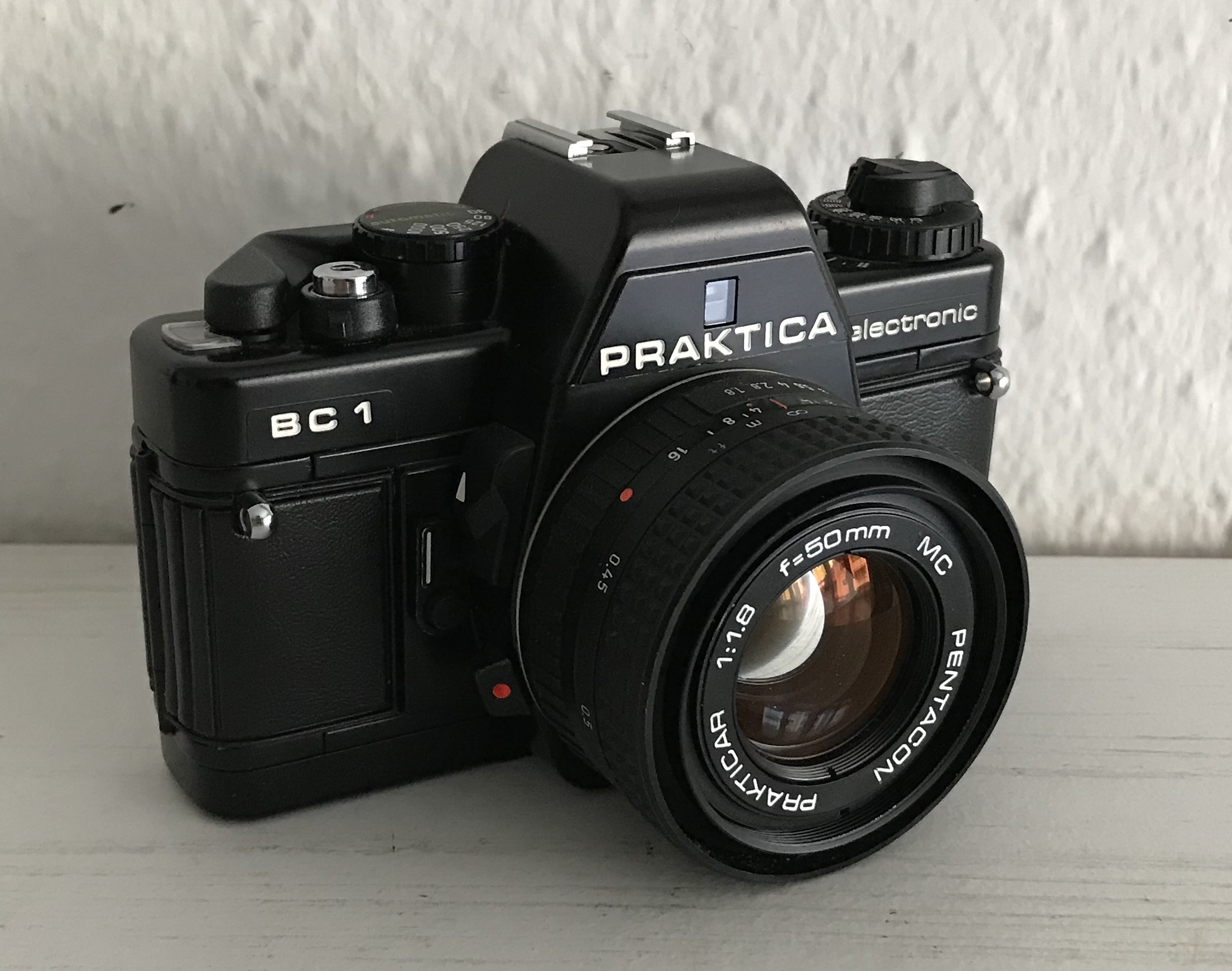 Hersteller: Kombinat VEB Pentacon Dresden Typ: Praktica BC 1 Baujahr: 1984 - 1988 (meine Kamera zwischen 14.09.1987 und 20.09.1987) Verschluss: elektrisch gesteuerter horizontaler Metalllamellenschlitzverschluss (B, A, 1s - 1/1000s, Blitz) Objektivanschluss: Praktica B Belichtungsmessung: TTL-Innenmessung mit Lichtkonzentrator und halbdurchlässigem Spiegel (Belichtungskorrektur +/- 2 EV) Blitzanschluss: Hot-Shoe in Prismenkappe, Blitzbuchse an Spiegelgehäuse, computerblitzfähig Besonderheiten: Vorlaufwerk, Blendeneinspiegelung, Motoranschluss, Stativgewinde