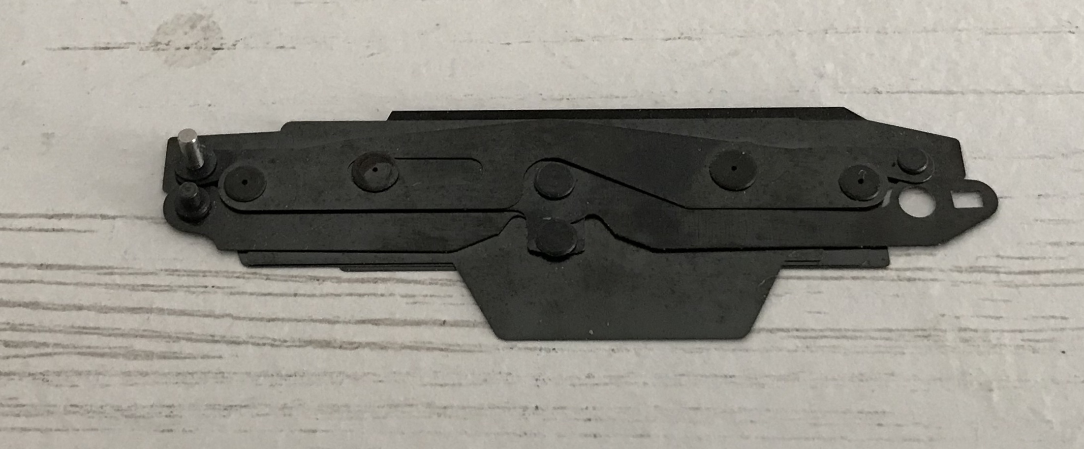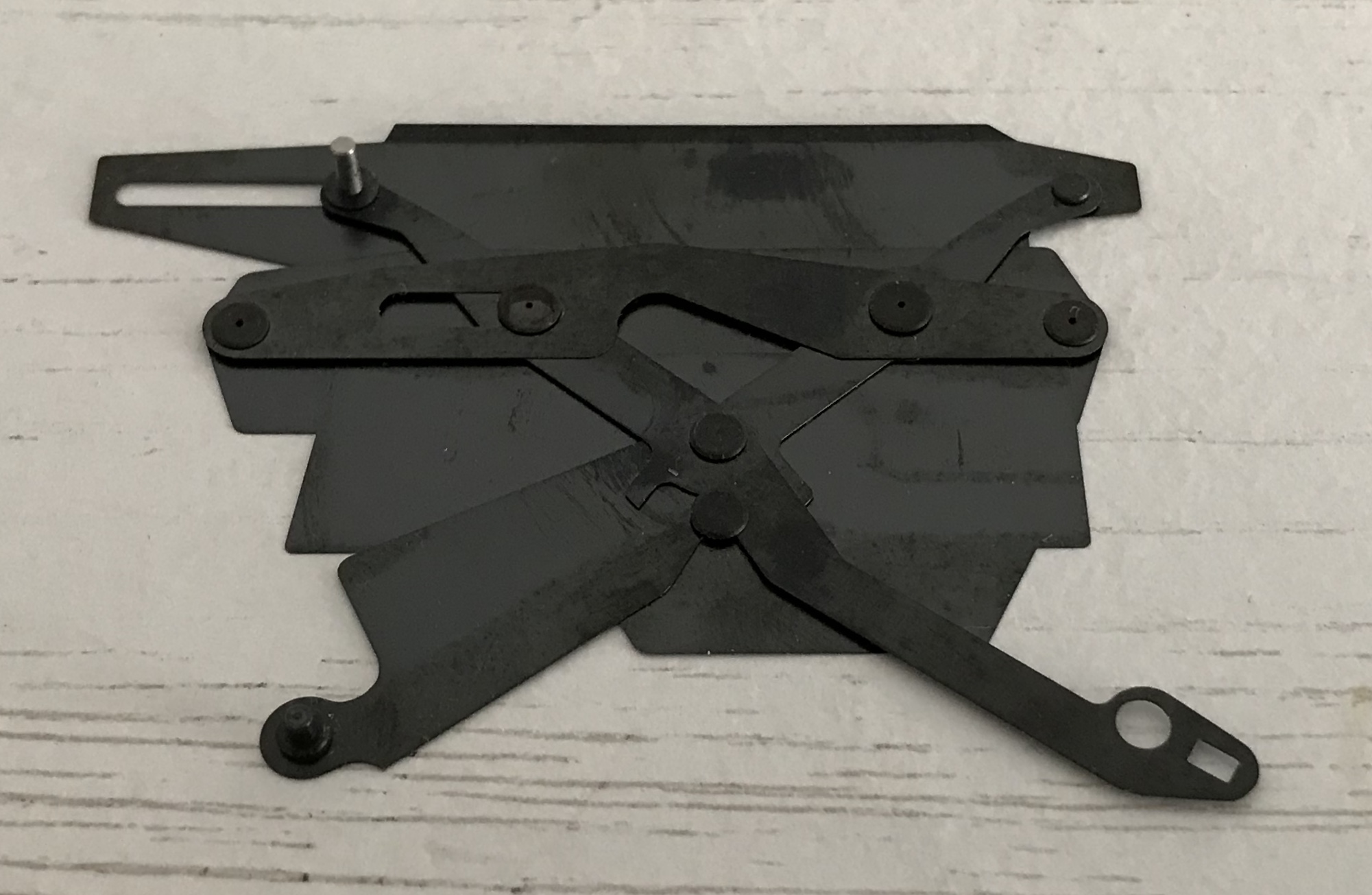 Um einmal die Komplexität der Konstruktion zu zeigen hier einmal ein Verschlussvorhang, bestehend aus 17 Einzelteilen mit einem Gesamtgewicht um 2g.