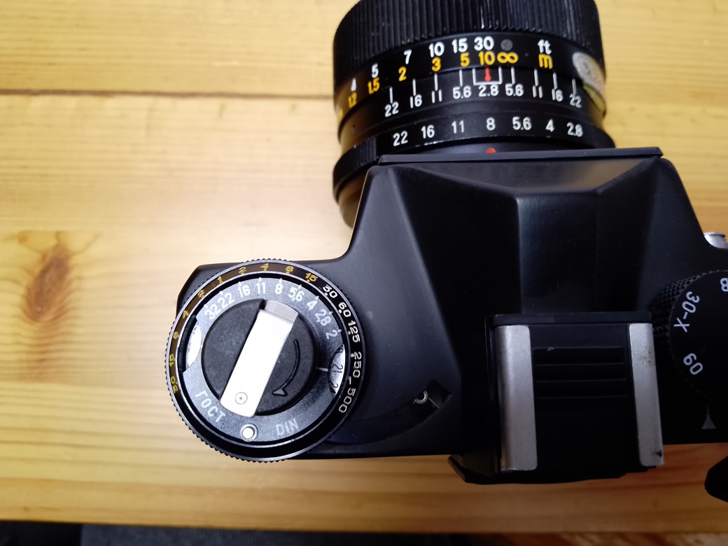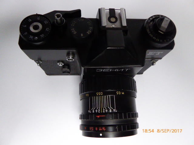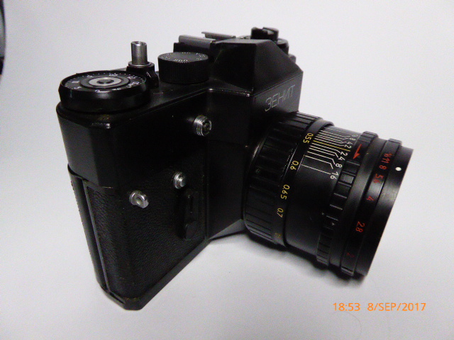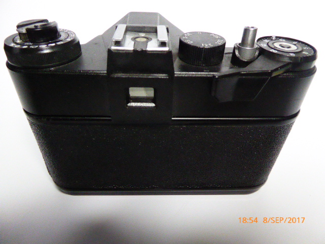 Kamera mit manuellen Filmtransport Geeignet für Wechselobjektive Typ der Verbindung: M42x1 Gewinde Scharfeinstellung: Handeinstellung, auf dem Bildschirm matte Oberfläche, mit Mikroprismen und großen Glasringen Belichtungsmesser: Integrierte TTL System mit LED Sucher-Display Belichtungszeit: 1/500s bis 1/30s + B Synchronisation: 1/30s Selbstauslöser: 7-15s Verzögerung Film einlegen: Rück- und Vorspulen per Hand Lichtempfindlichkeit: Handeinstellung ISO 16-500 Flansch-Basis: 45.5mm Stativ-Fassung Maße : 142x97x99 Gewicht: 820g
