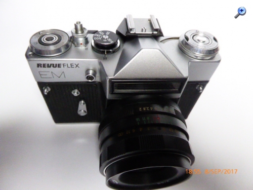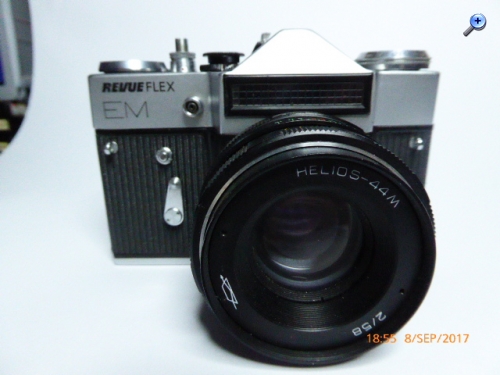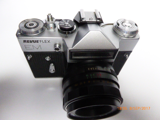 Die Revueflex EM ist eine Spiegelreflexkamera. Bei ihr handelt es sich um eine Version der Zenit EM. Diese wurde von 1972 bis 1988 von KMZ in der Nähe von Moskau gebaut. Foto-Quelle war einer der größten Versandhandel von Kameraequipment in Westdeutschland. Unter den Marken Revue und Revueflex wurde Kameras von verschiedenen Herstellern verkauft.