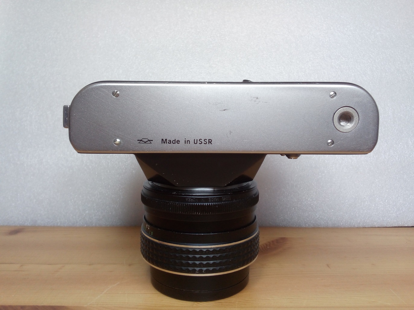 Hersteller: Krasnogorski Mechanitscheski Zawod (KMZ), Krasnogorsk bei Moskau, ehem. UdSSR Baujahr: ca. 1979 Seriennummer: 79166643 Typ: KB-Spiegelreflexkamera, 24 x 36 mm, max. 36 Aufnahmen, Selenzellen gestützter Belichtungsmesser, Filmempfindlichkeit 16 - 500 ISO Verschluß: Tuchverschluß, "B" 1/30 - 1/500 sec und Selbstauslöser Blende: je nach Objektiv Fokussierung: manuell, je nach Objektiv