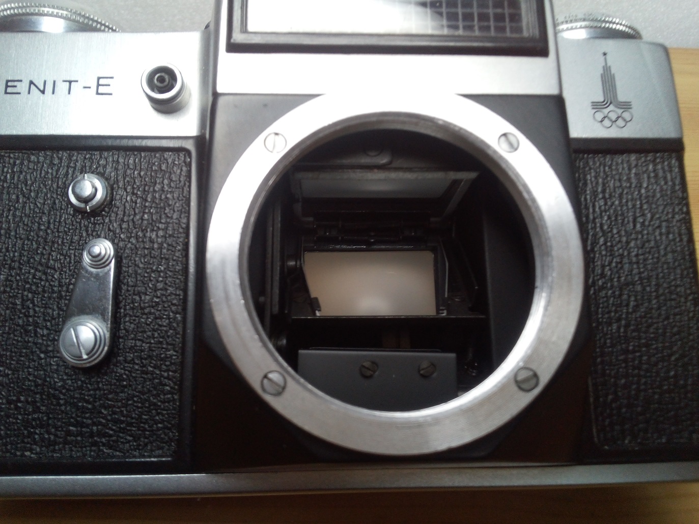 Was zuerst auffällt, wenn man die Zenit-E zur Hand nimmt, ist das Gewicht. Ohne Objektiv bringt die Kamera etwa 920 Gramm auf die Waage. Man könnte fast meinen, dieser Apparat ist für die Ewigkeit gebaut. Durch den M42 Schraubanschluß steht eine fast unbegrenzte Anzahl an Objektiven zur Verfügung.