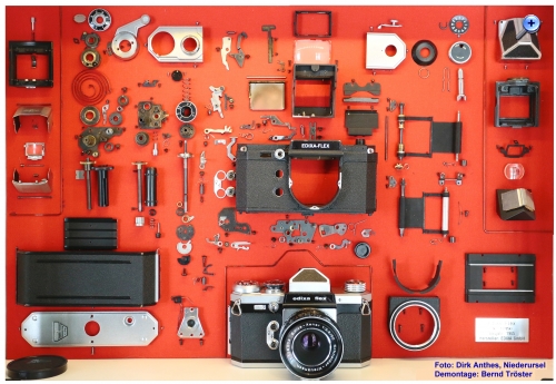 ein Forumbesucher hat mir ein sehr interessantes "Explosionsfoto" einer Wirgin Edixaflex-Kamera zugesandt mit der Genehmigung das Foto hier im Forum zu zeigen. Vielen Dank dafür an Dirk Anthes.